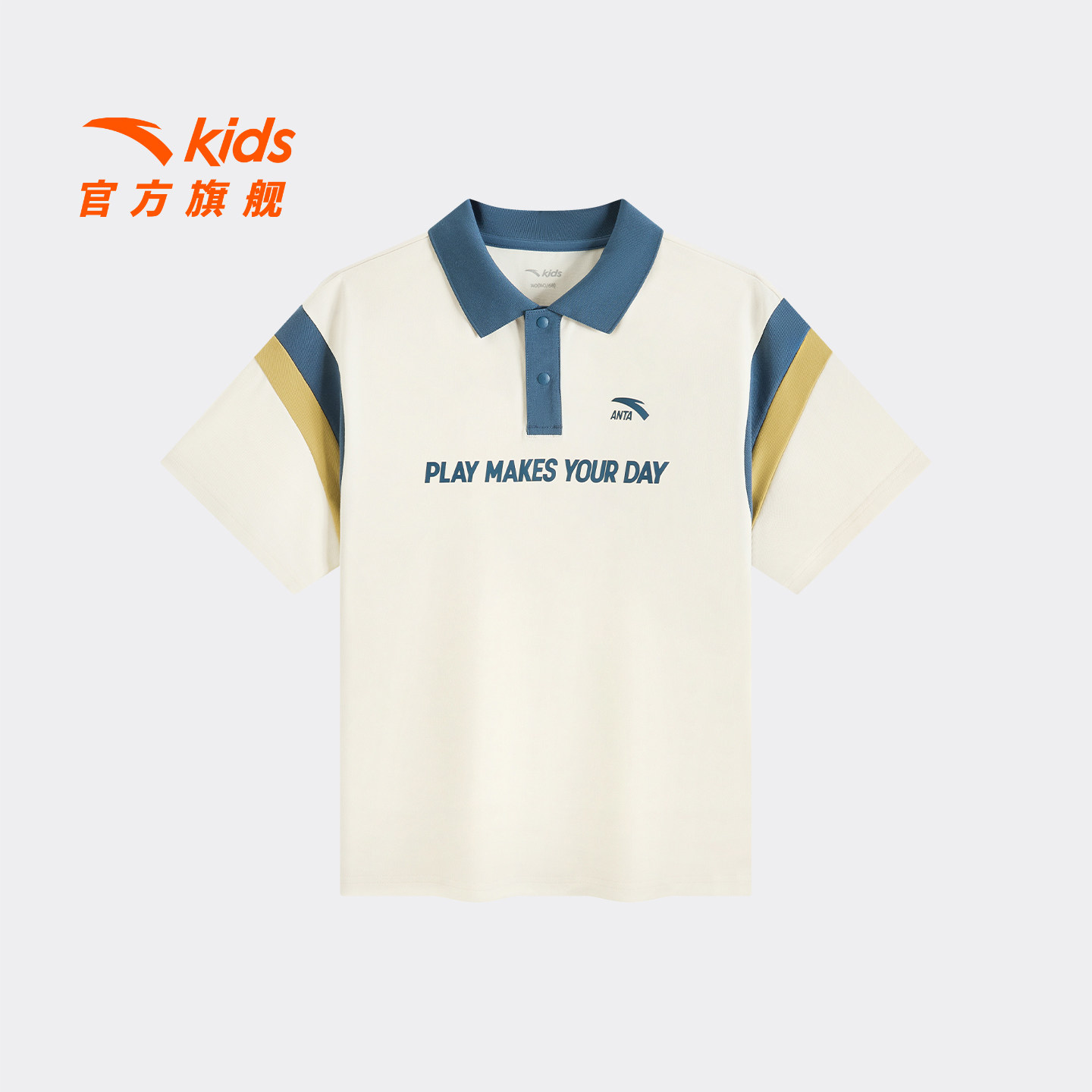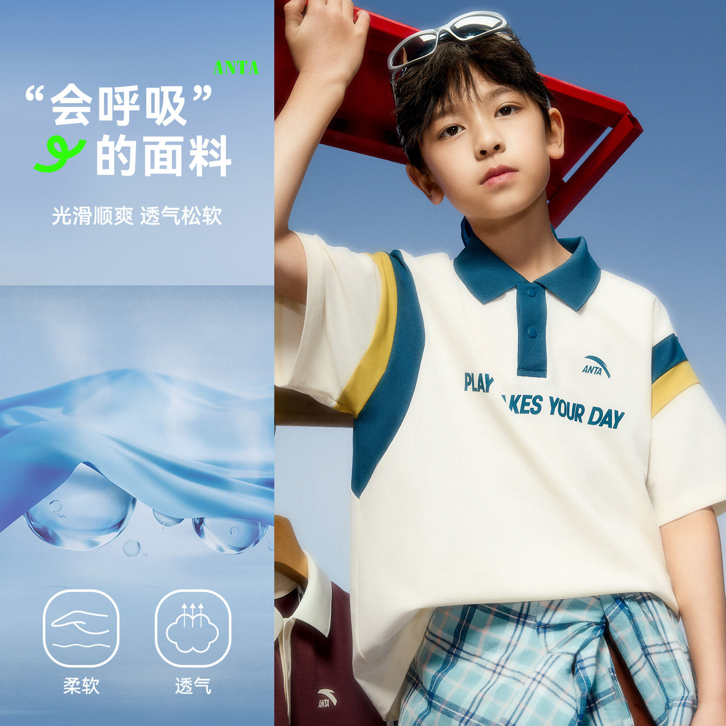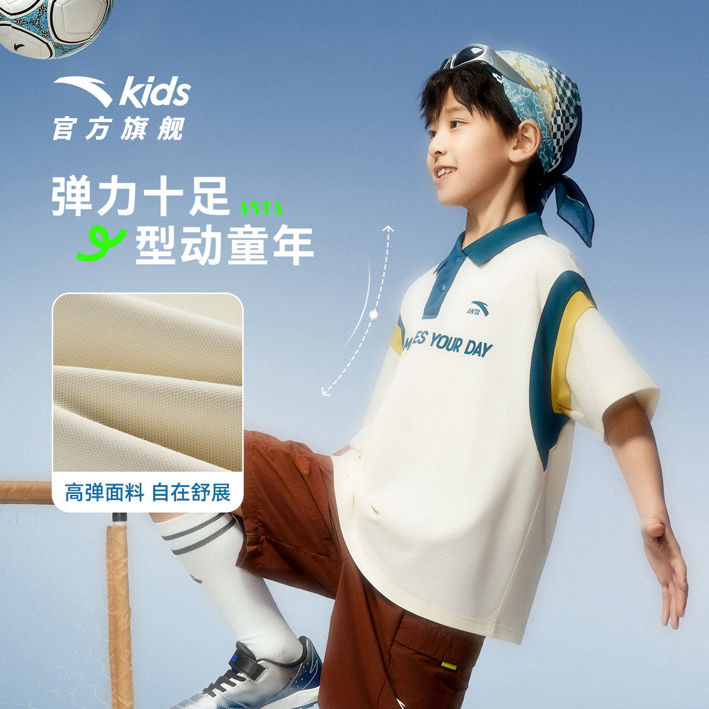 安踏儿童足球文化短袖POLO衫2026年夏季新款亲肤透气中大童短T恤