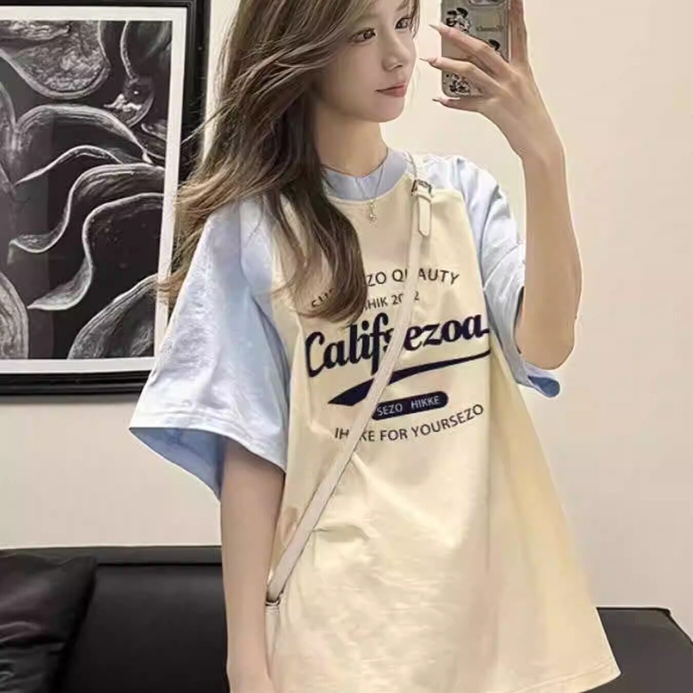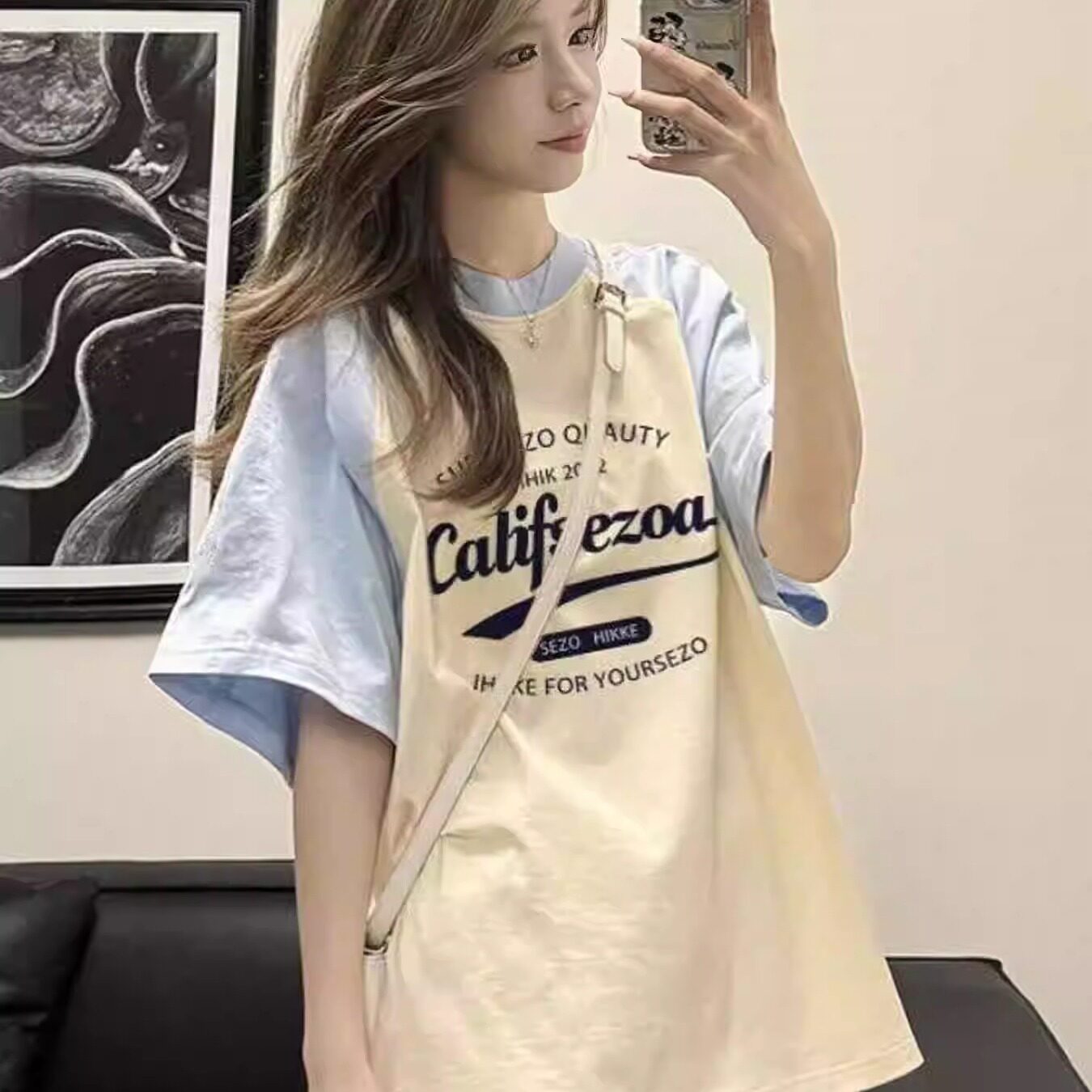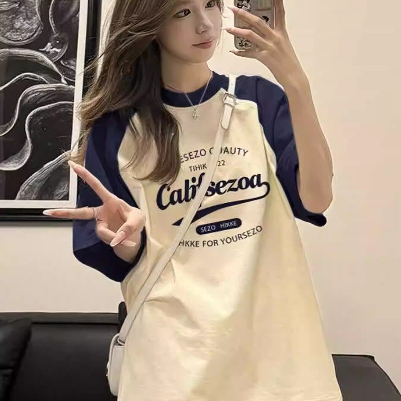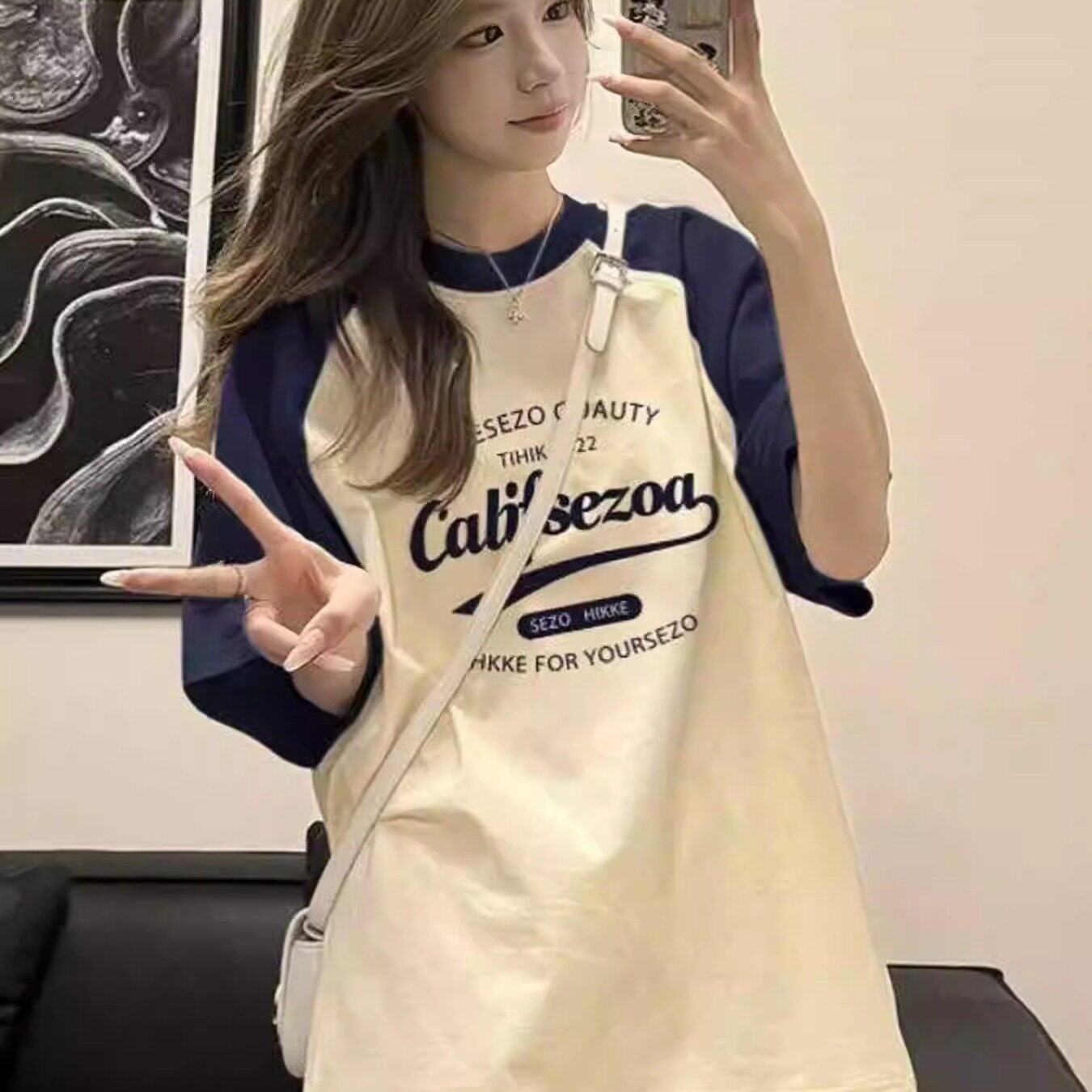 纯棉插肩撞色短袖t恤女2025新款爆款初中高中学生宽松半袖上衣ins