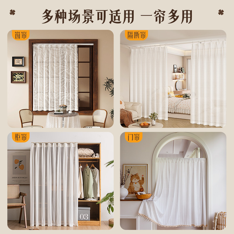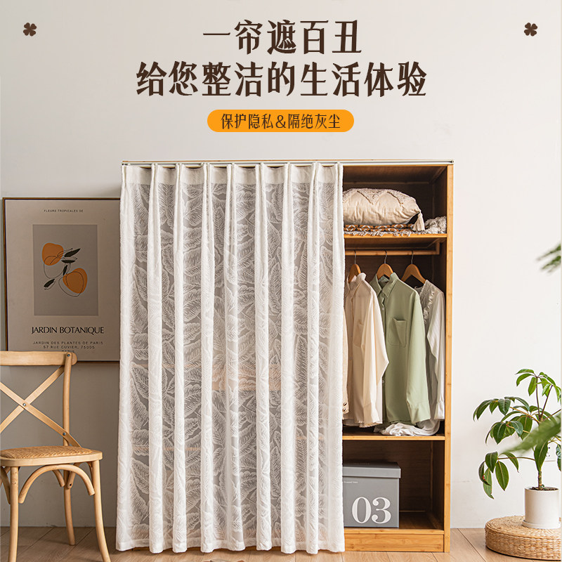 杂物柜子遮挡帘免打孔安装滑轨道衣柜防尘帘书柜置物架货架纱门帘