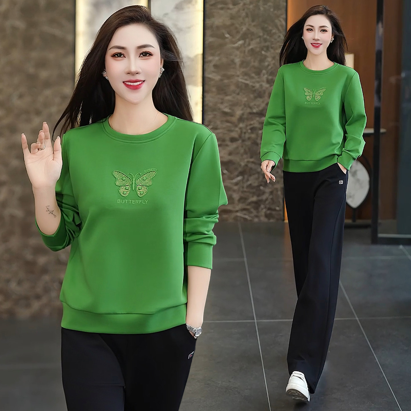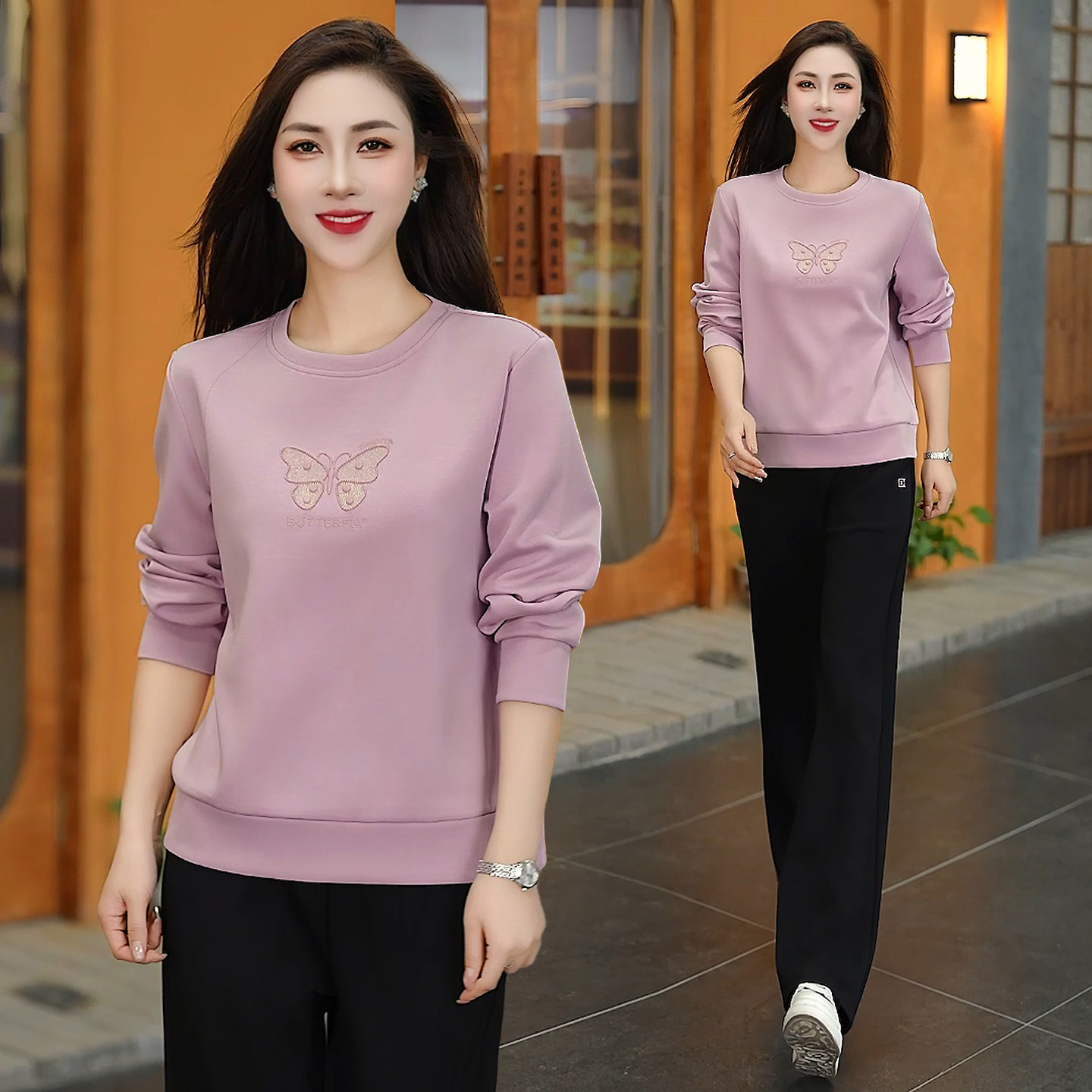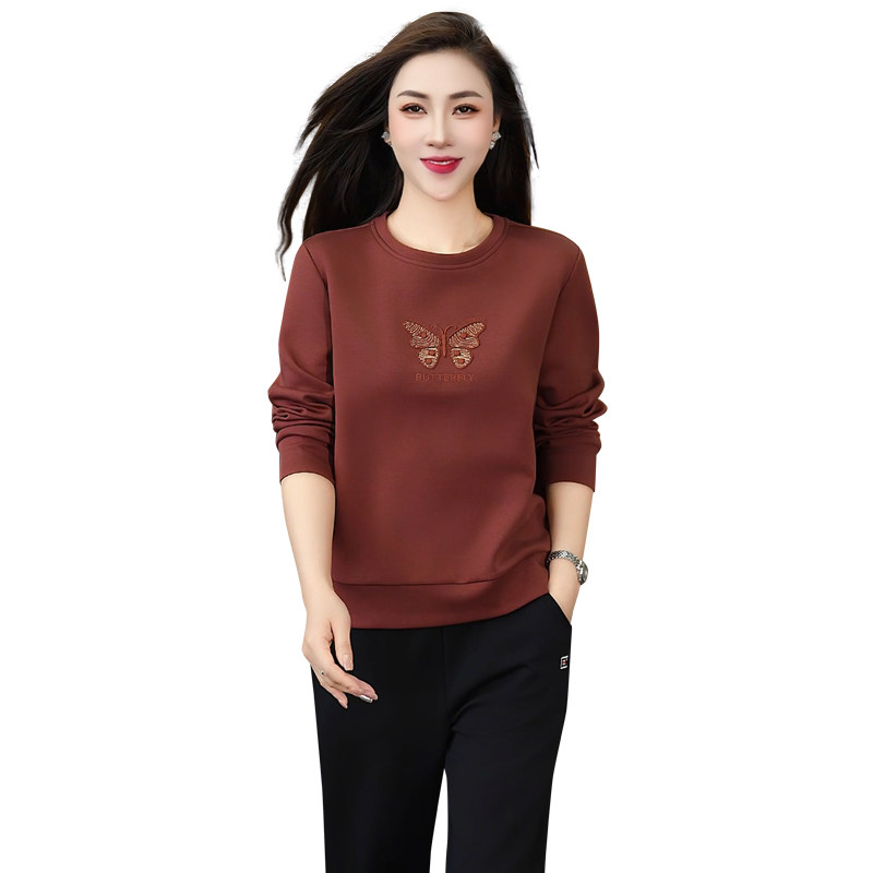 圆领运动套装女春秋妈妈卫衣2026新款中年女秋装休闲跑步服两件套