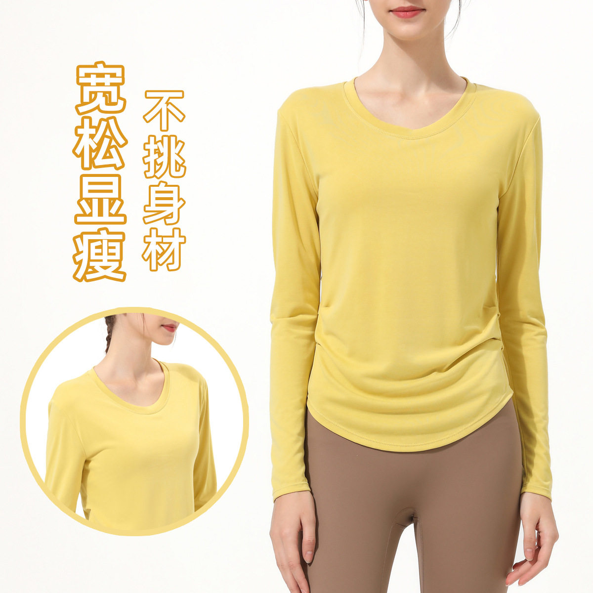 秋冬新款瑜伽服女长袖T恤带胸垫宽松运动上衣罩衫跑步健身服孕妇