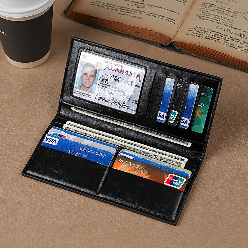 男士长款钱包复古油蜡真皮质感手拿包RFID防磁防盗刷超薄简约钱夹