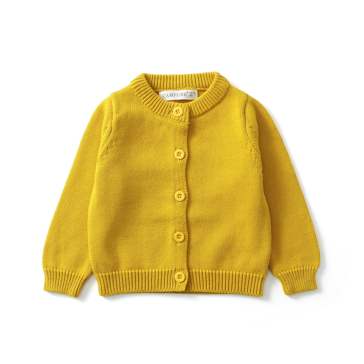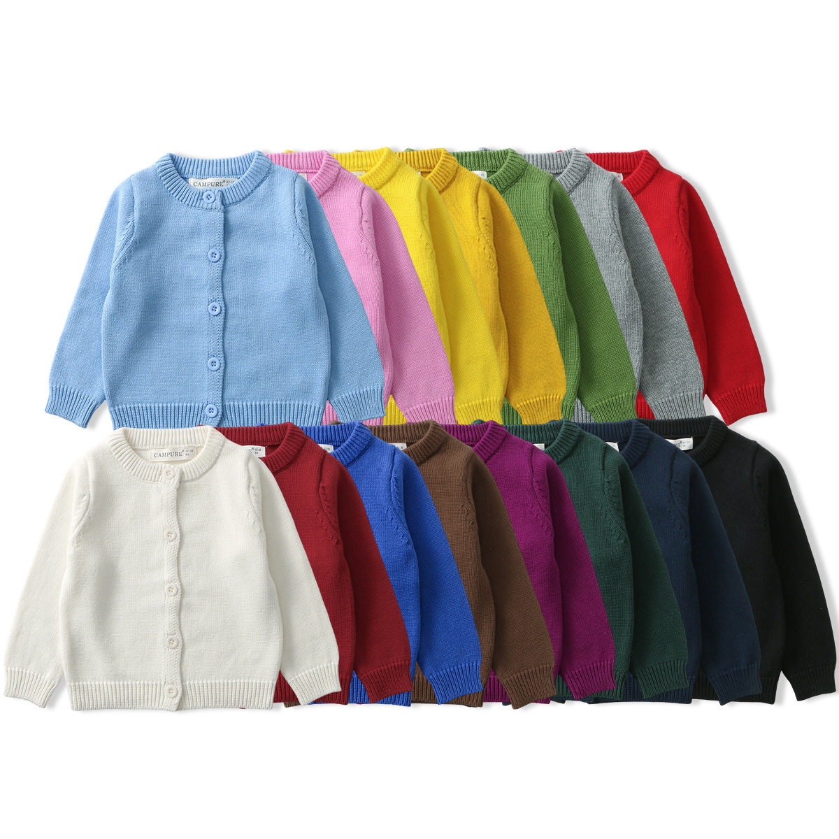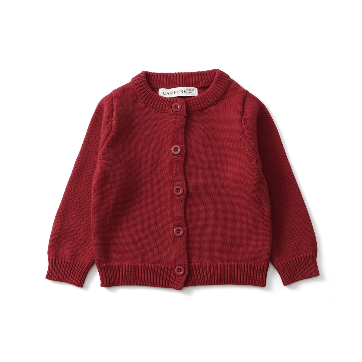儿童针织开衫红色男女童宝宝毛衣系扣对襟秋冬上衣圆领纯棉中小童