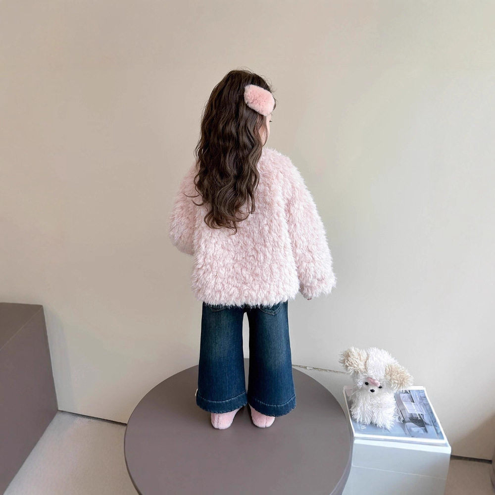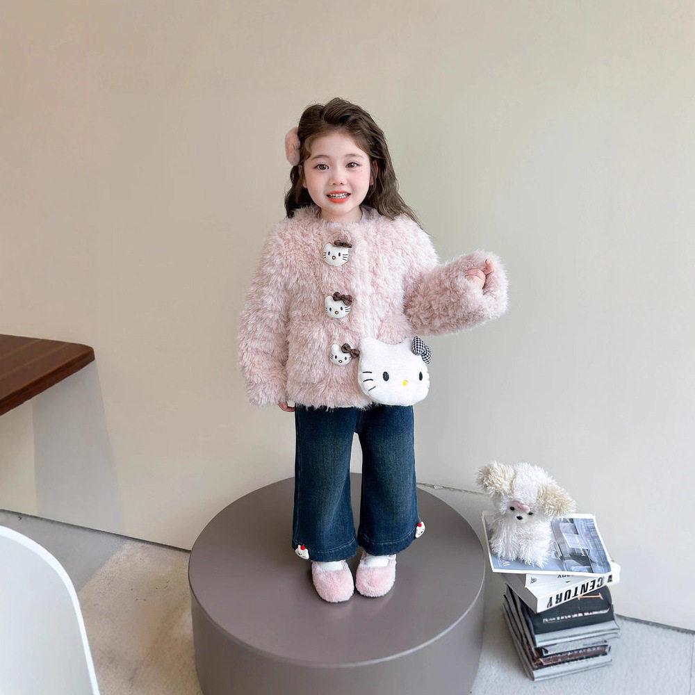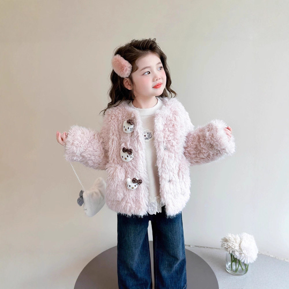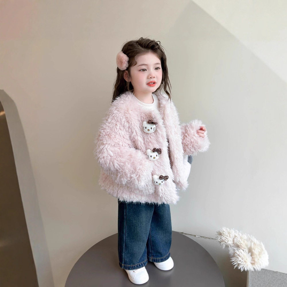 女童卡通猫毛毛衣外套秋冬2025新款儿童夹棉加厚上衣女宝宝超好看