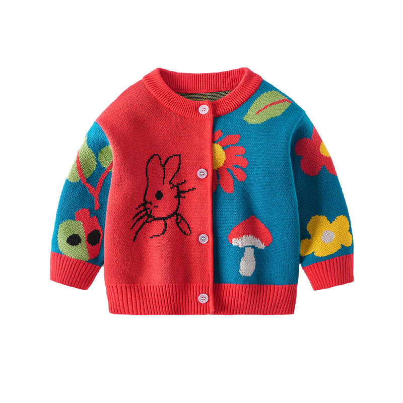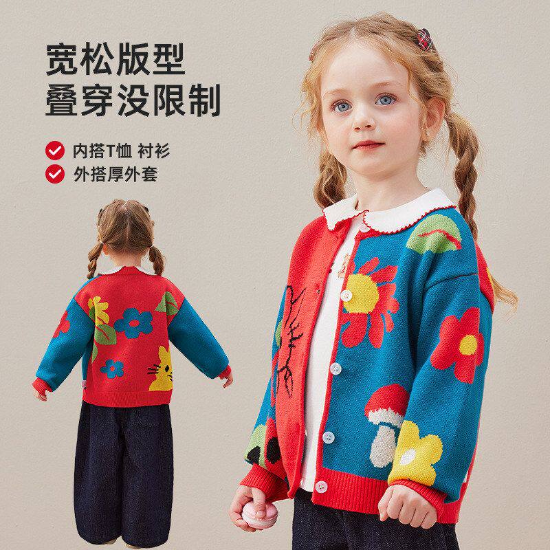女童超好看开衫毛衣春秋款女宝宝中小童红色双层加厚针织毛衣外套