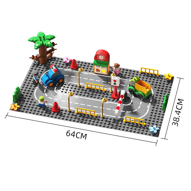 公路底板大颗粒积木地板通用桌面拼装汽车弯道场景直道积木底板