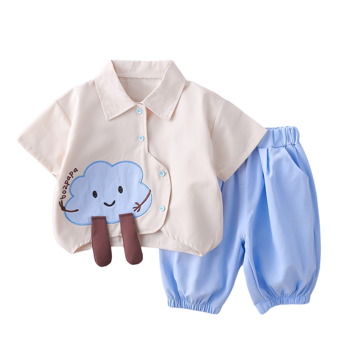 男童帅气夏装衬衫2026夏季新款韩版儿童短袖卡通衬衣宝宝两件套潮