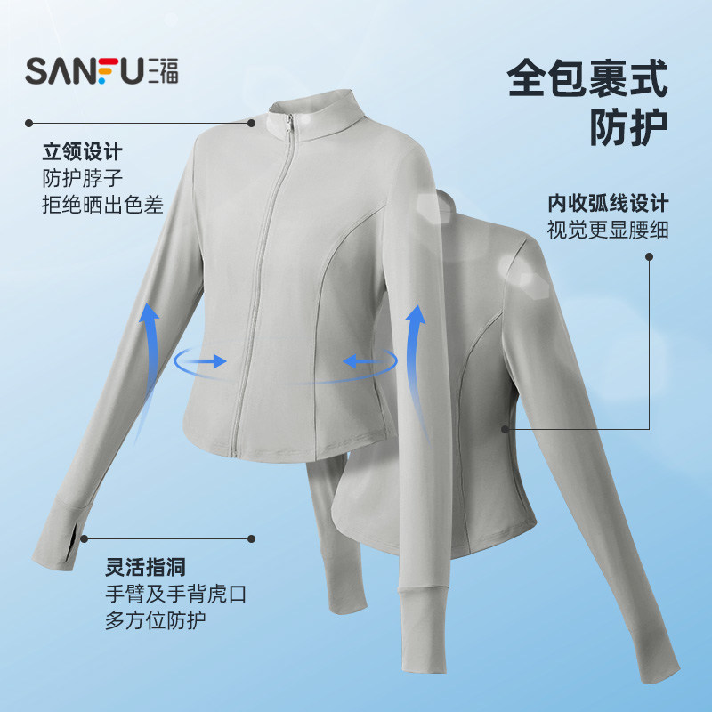 311线报网描述:UPF50+,防紫外线≥95%,修身立领凉感