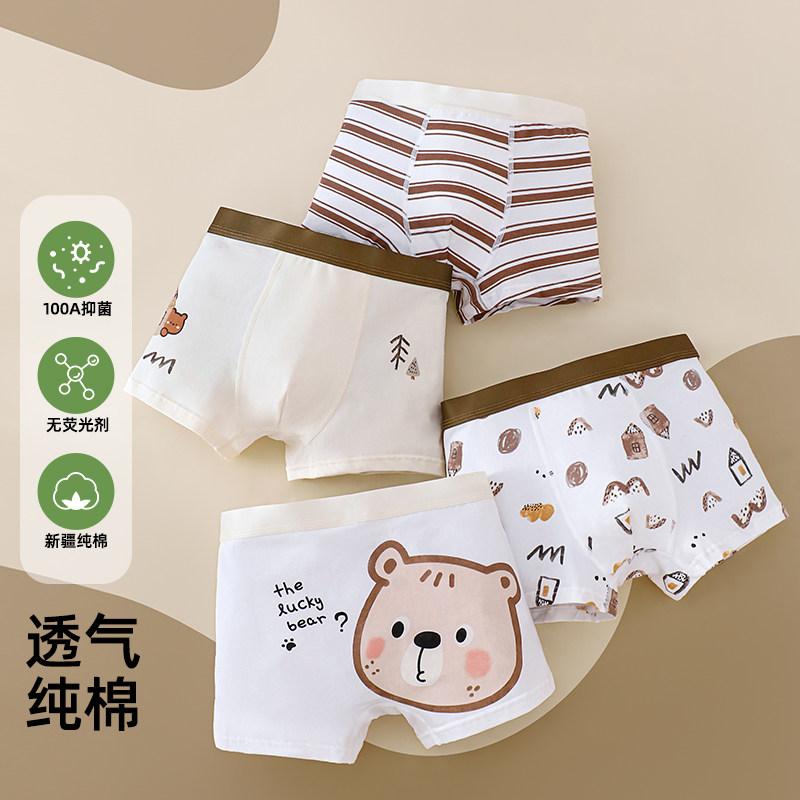 男童新疆纯棉内裤100A抗菌明筋头平角男孩中大童四角小童透气短裤