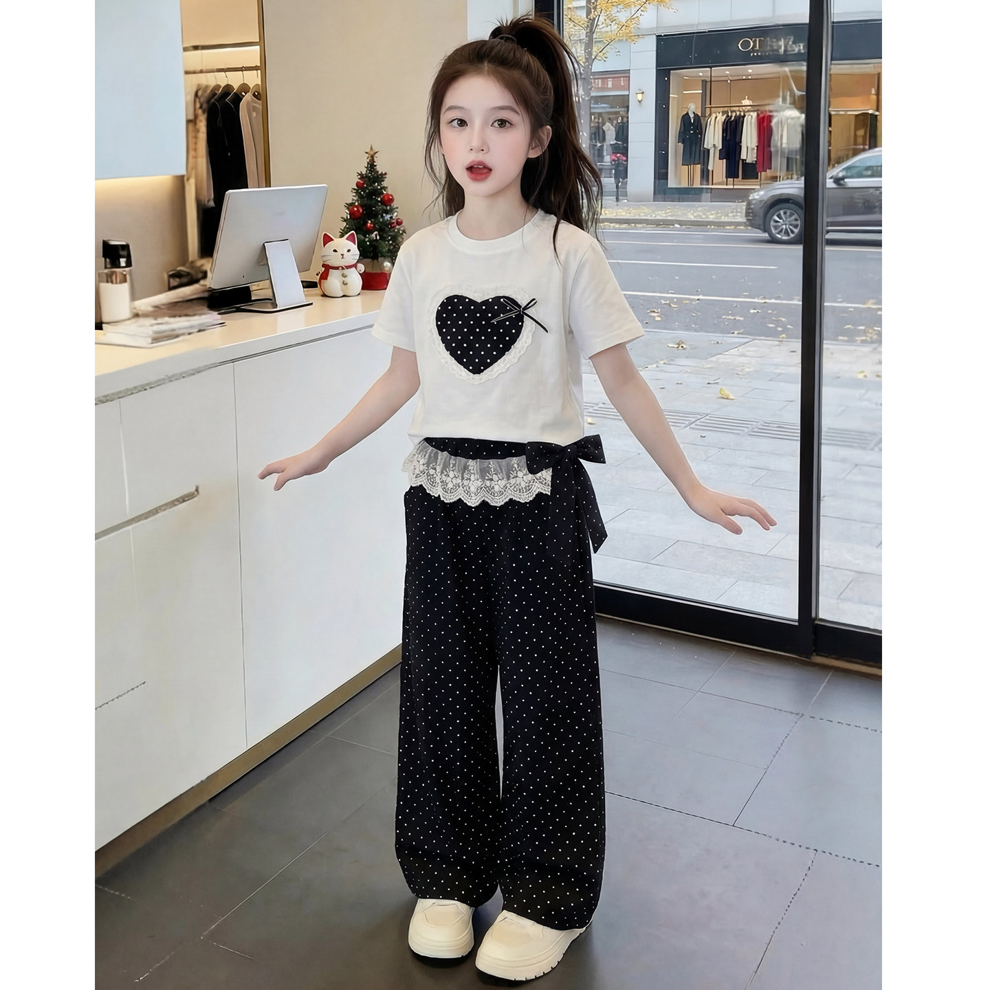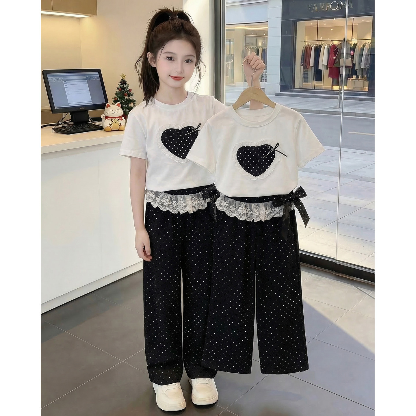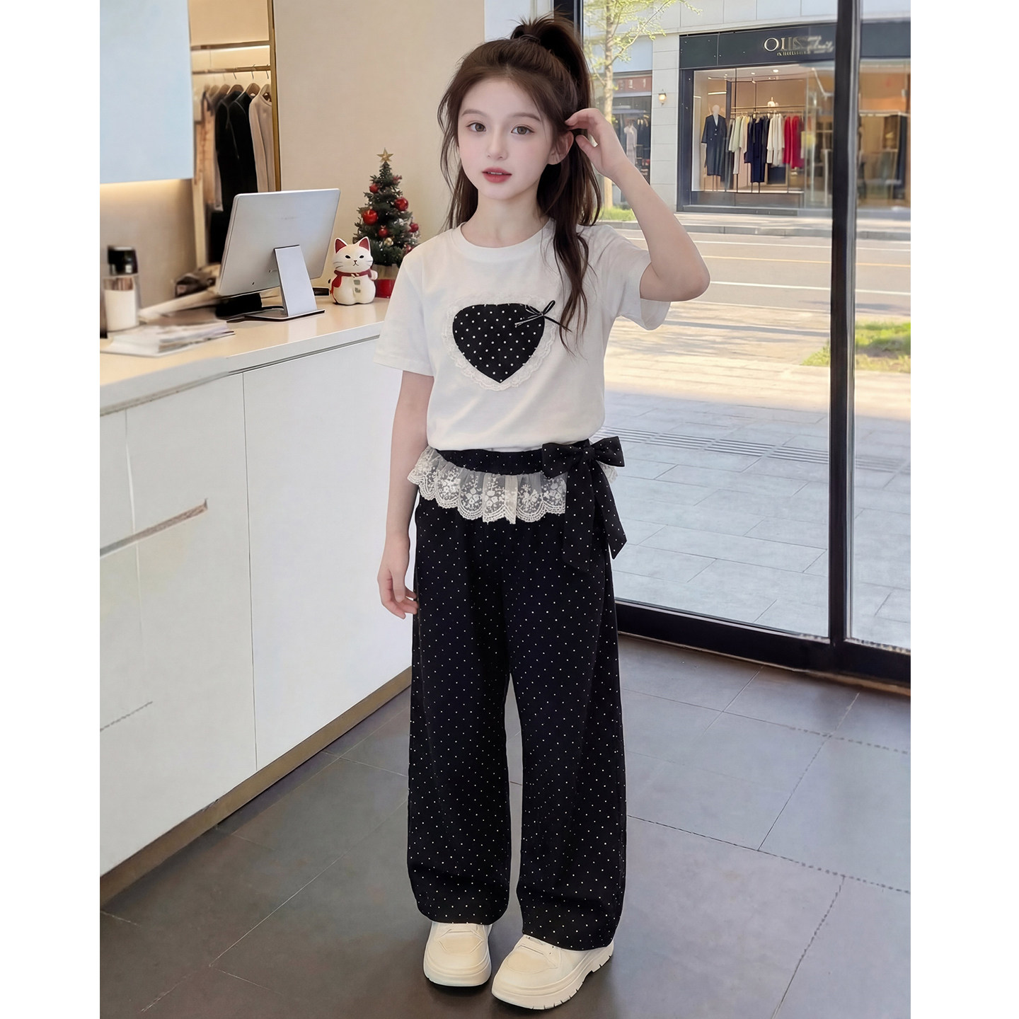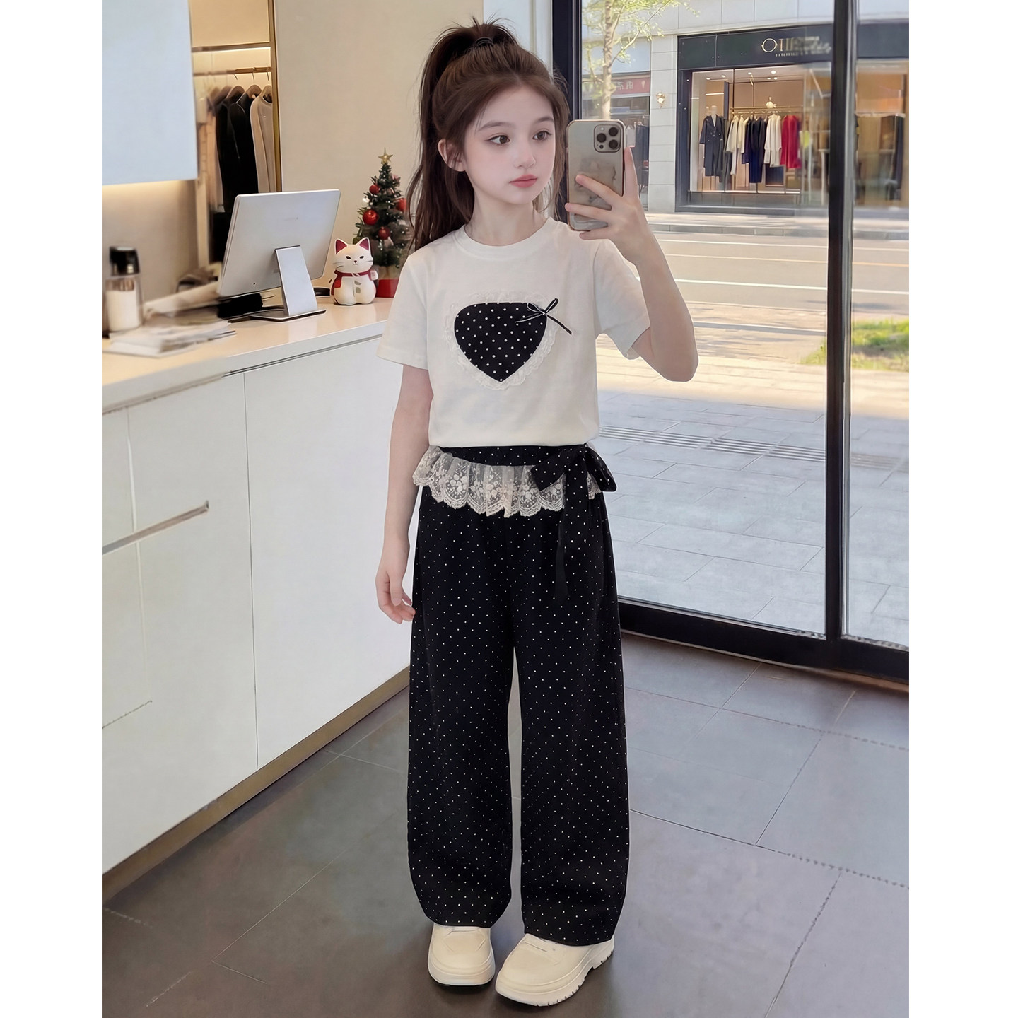 女童夏装套装2026新款儿童爱心波点韩版两件套女孩夏季时髦衣服潮