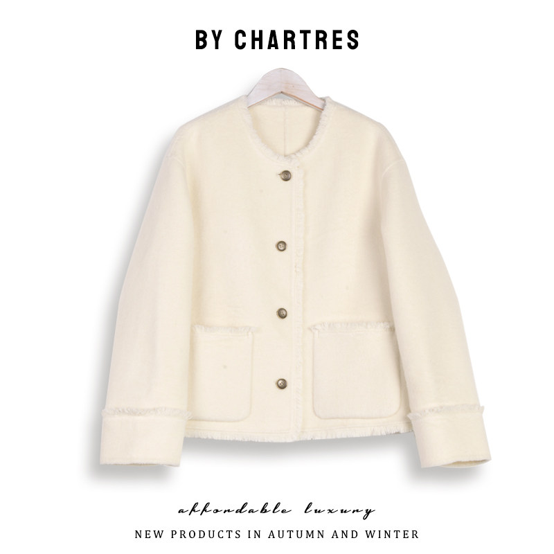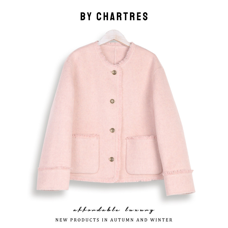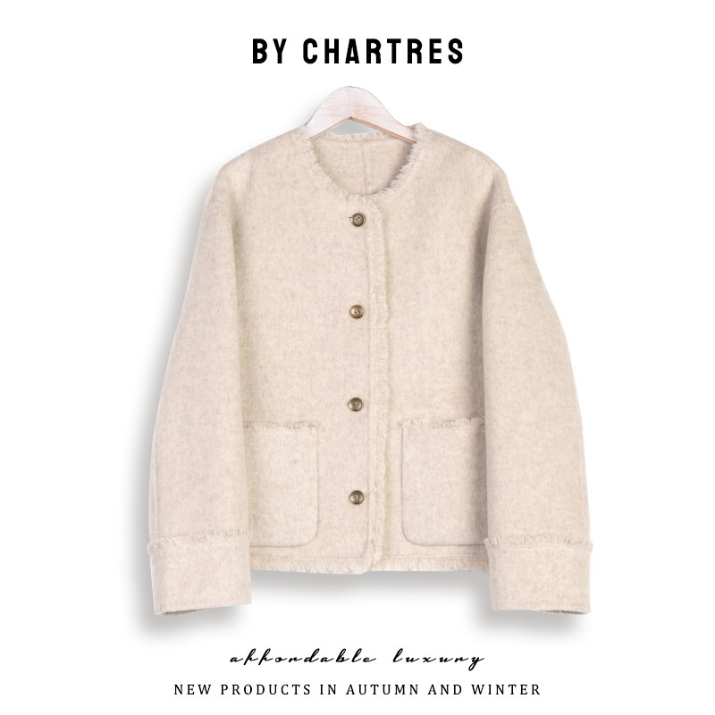 2025秋季新款拉毛双面羊毛大衣 韩系短款小个子毛呢外套女
