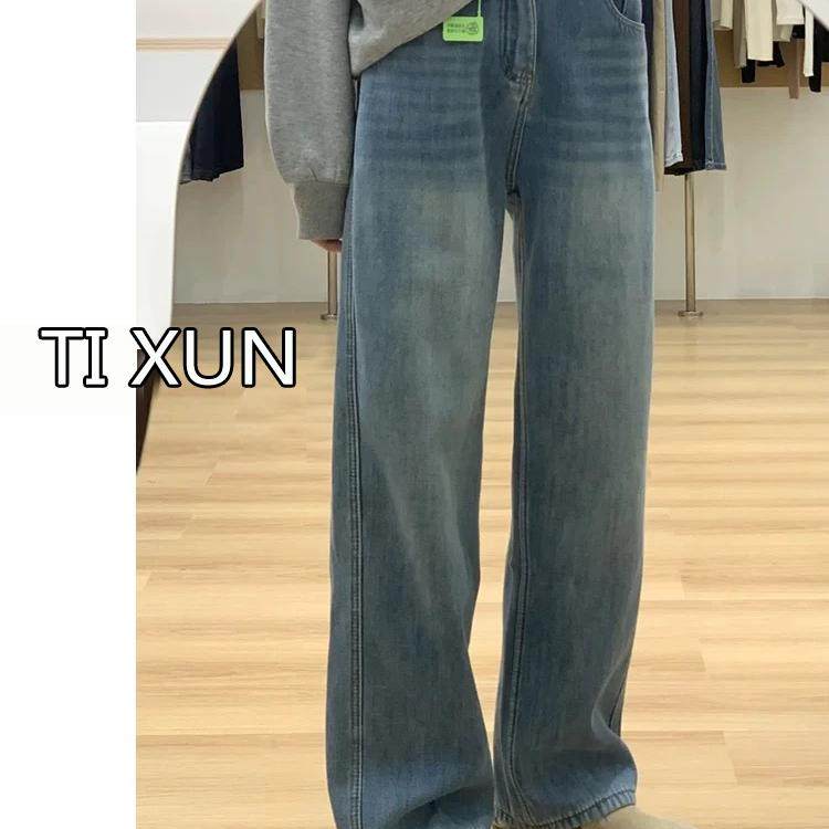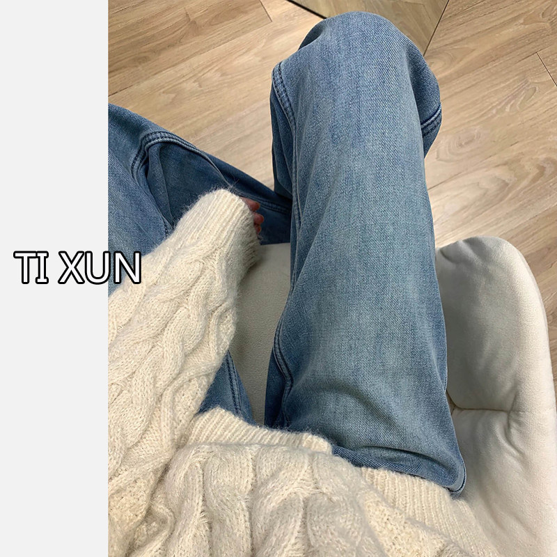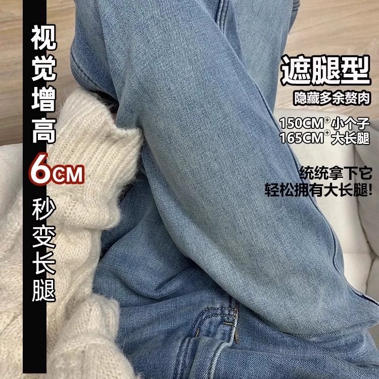 2026春新款牛仔裤女高腰大码胖mm宽松显瘦窄版梨形身材阔腿裤直筒