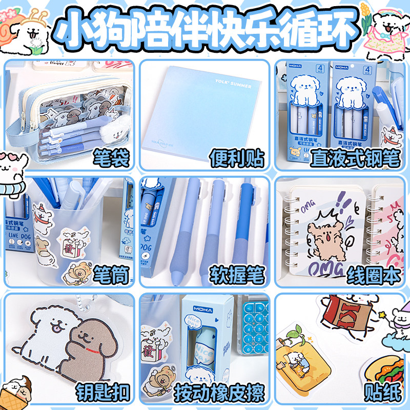 线条小狗文具套装大礼包一年级开学文具礼盒学习用品入学必备女孩生日礼物女生笔袋小学生文具初中生开学礼物