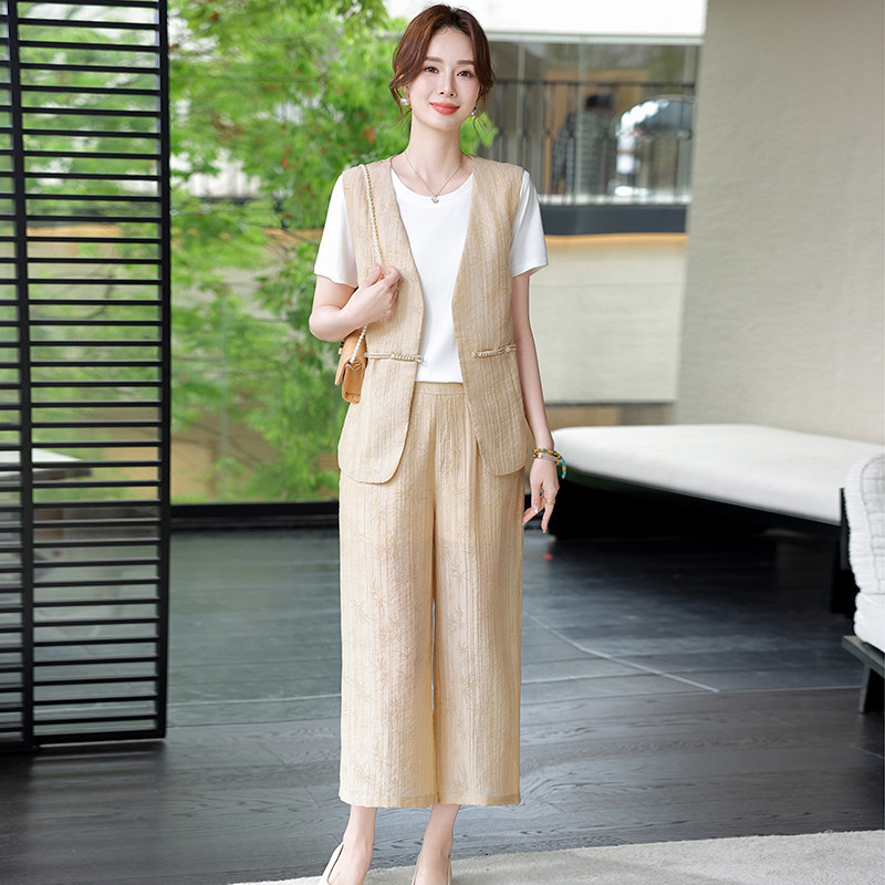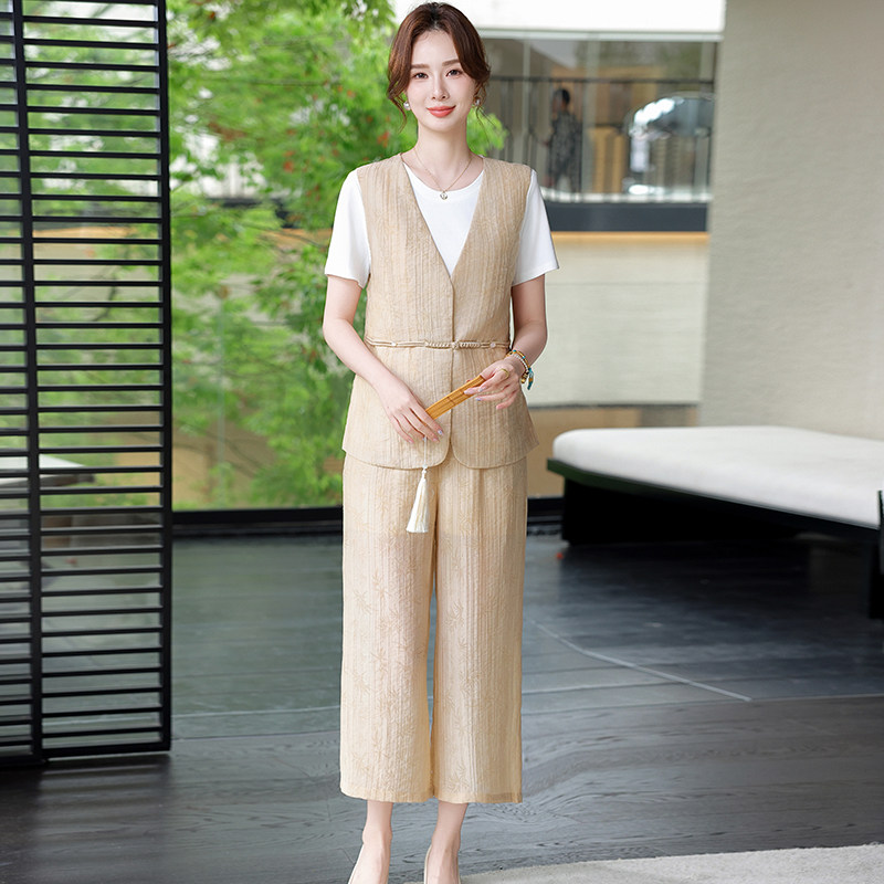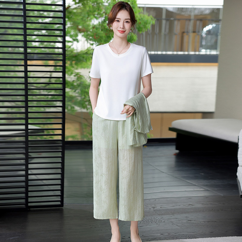 洋气妈妈夏2026新款女装套装时尚中老年人上衣T恤裤子夏装三件套