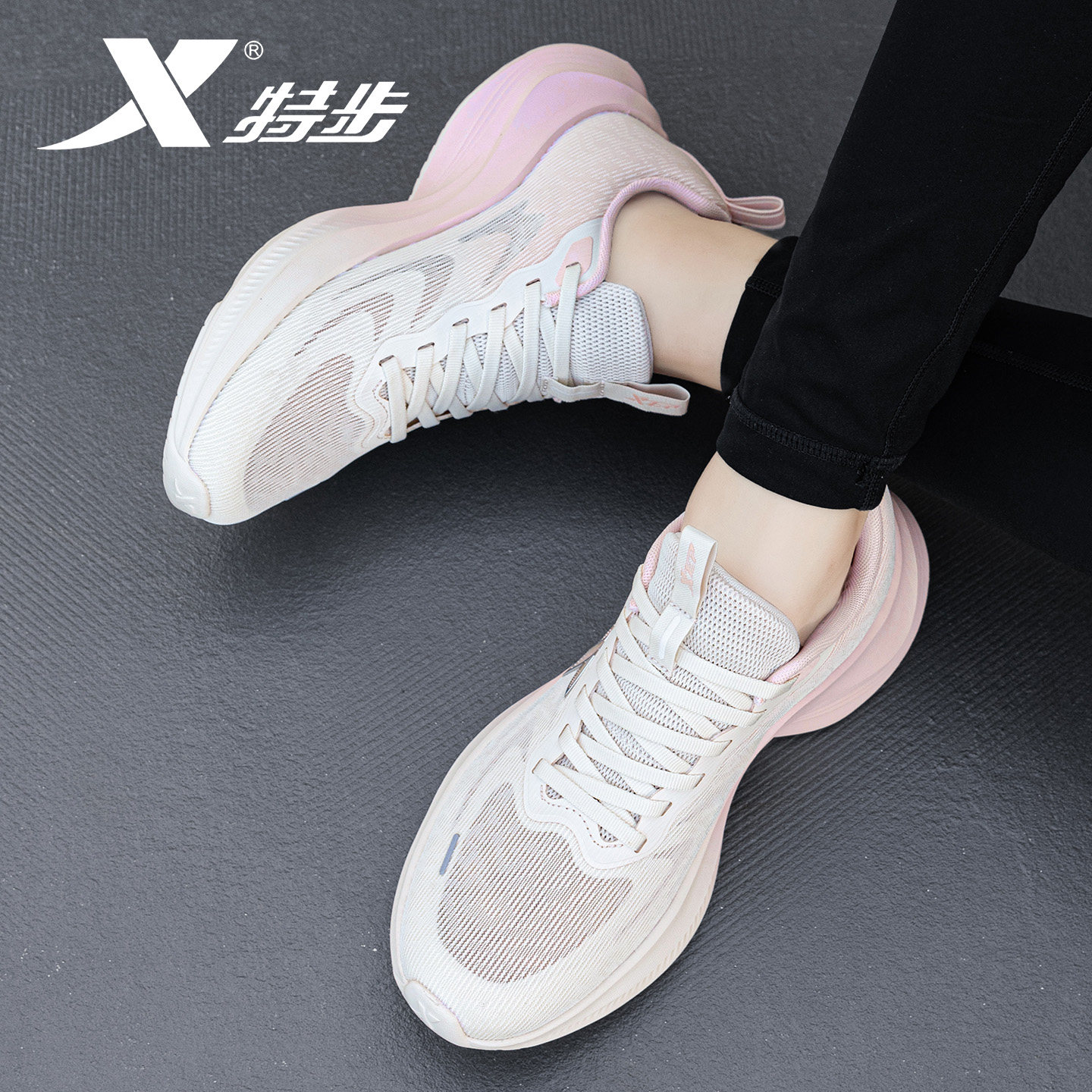 特步女鞋透气休闲运动鞋跑鞋新款初中生网面训练跑步鞋