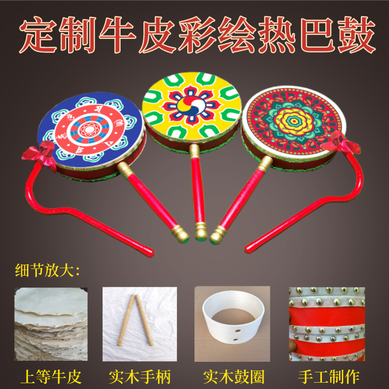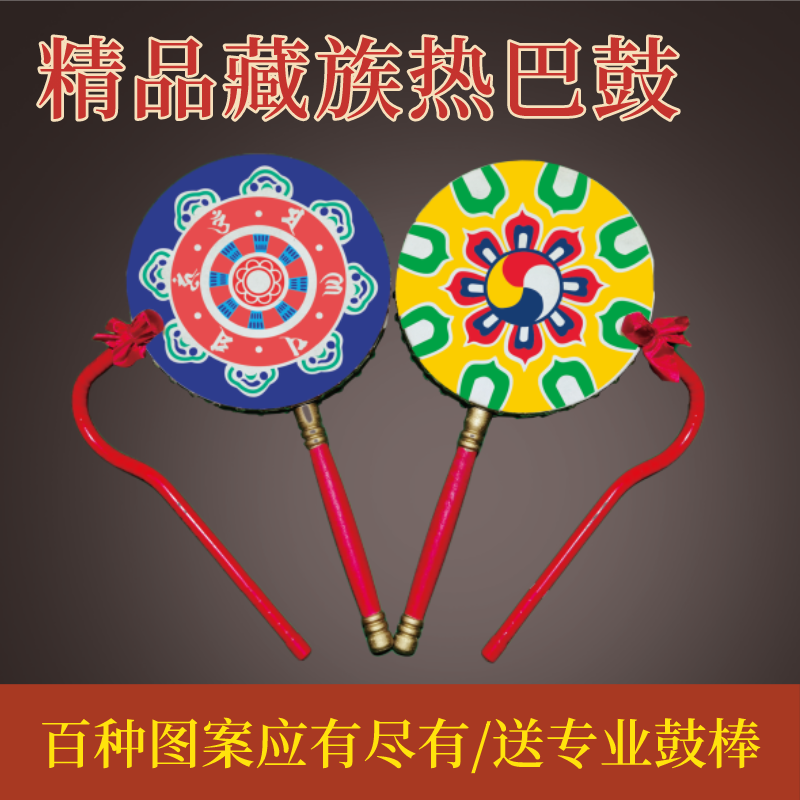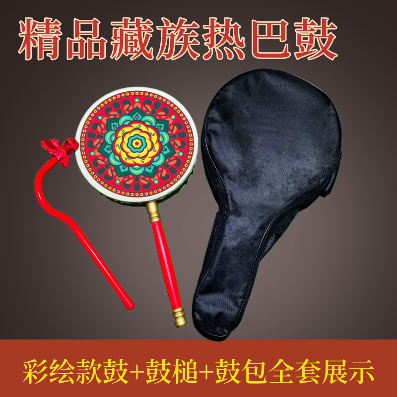 成人儿童藏族彩绘牛皮热巴鼓手柄鼓热巴舞蹈道具演出艺考专用鼓包