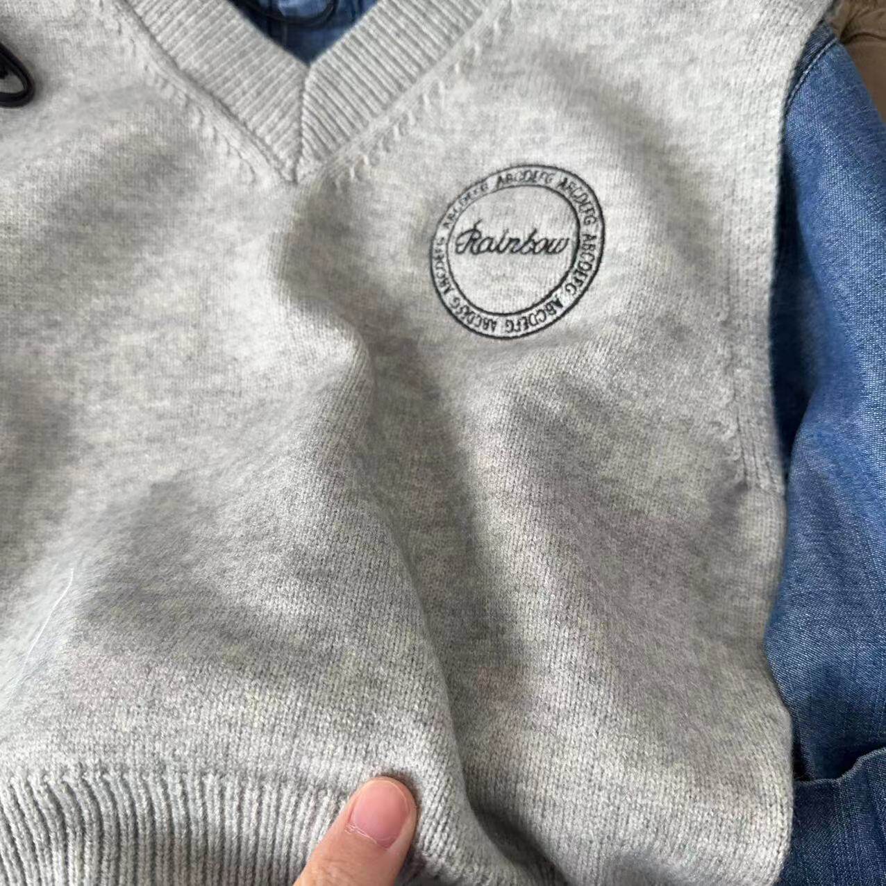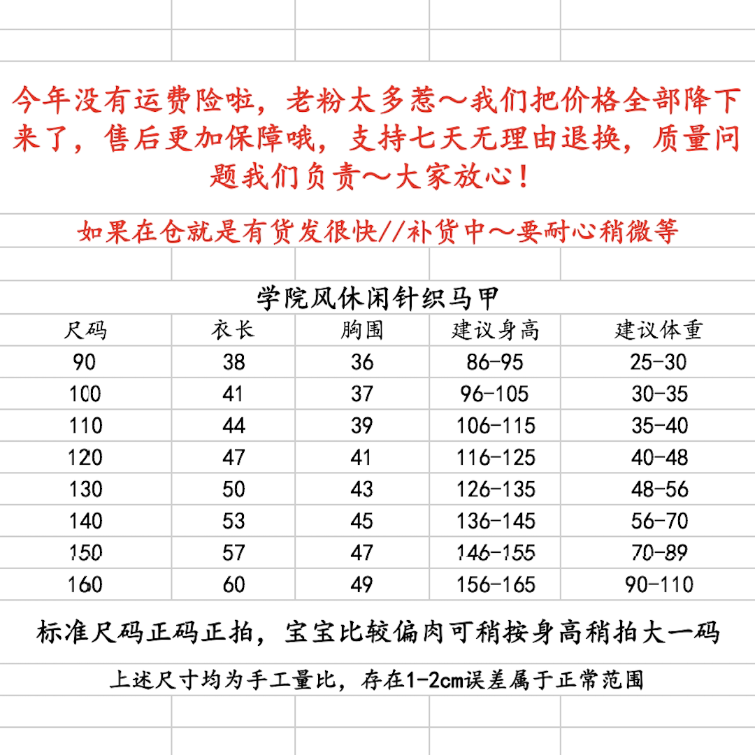 儿童2025春季新款学院风针织马甲男童女童休闲卡通百搭套头毛衣潮