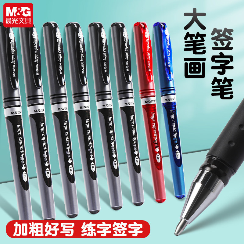晨光1.0中性笔大容量签字笔练字红笔黑色粗头笔墨水笔办公黑色水笔加粗1.0mm巨能写笔学生用签名笔碳素粗笔杆