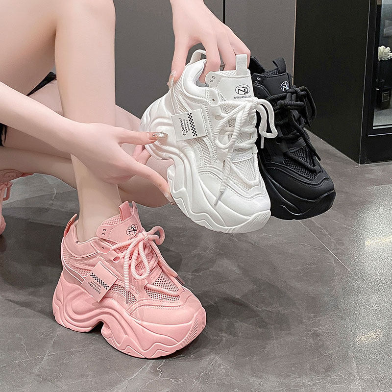 2026春季新款9cm内增高女鞋厚底透气老爹鞋女百搭网面运动休闲鞋