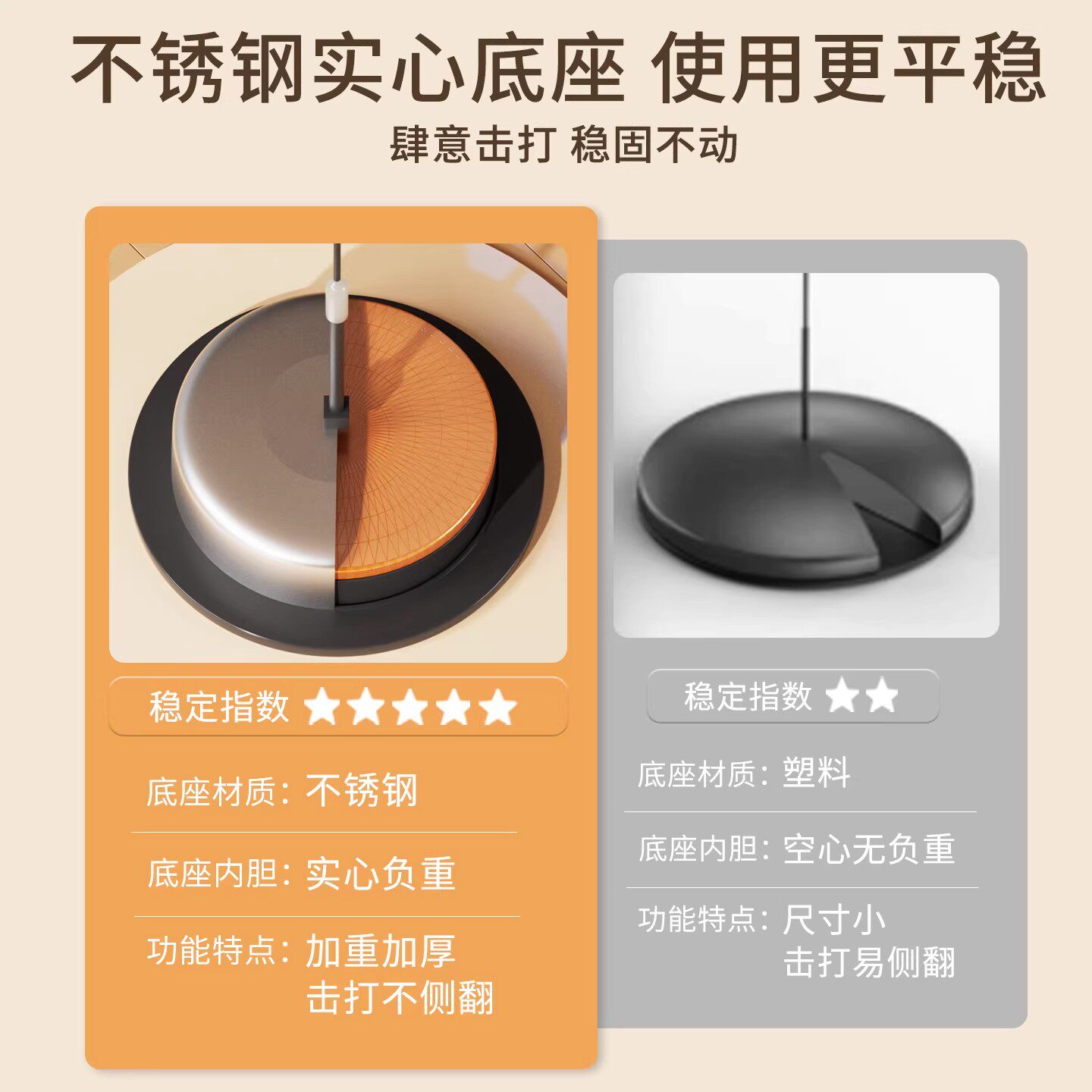 311线报网描述:不锈钢实心底座使用更平稳肆意击打稳固不动