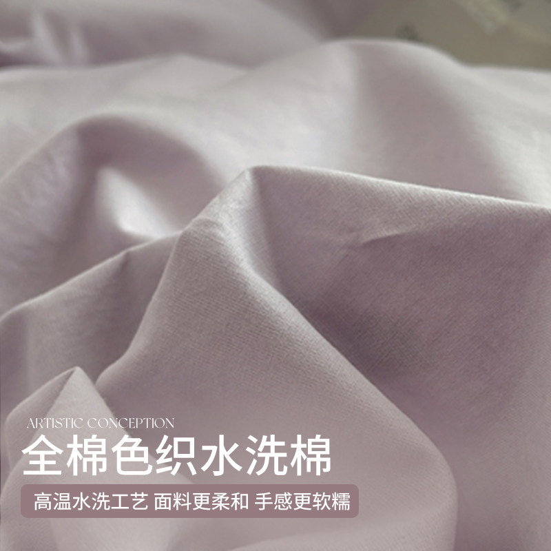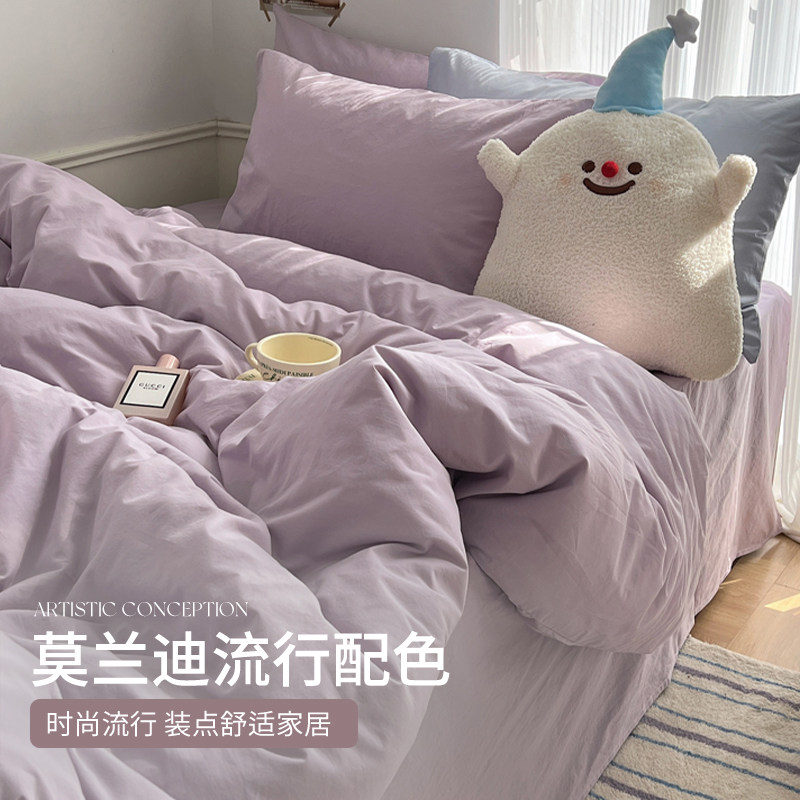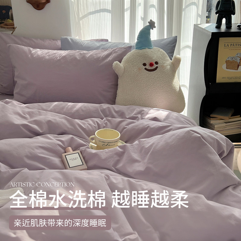 紫色水洗棉床上四件套纯棉全棉2026新款简约纯色四季通用床单被套