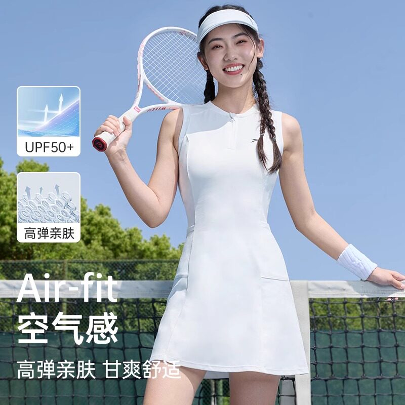 白色网球连衣裙女2024新款高端美式透气网球服高尔夫羽毛球运动裙