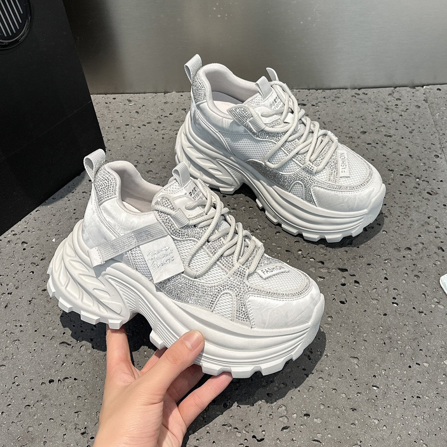 巨好看不累脚老爹鞋女2026新款夏季薄款小白鞋厚底增高休闲运动鞋