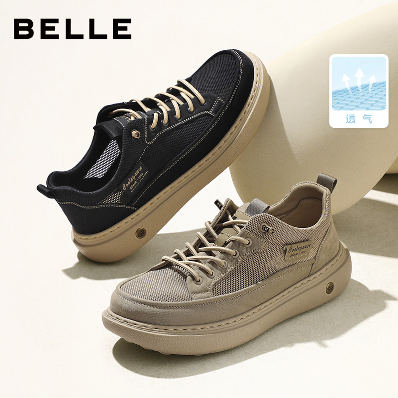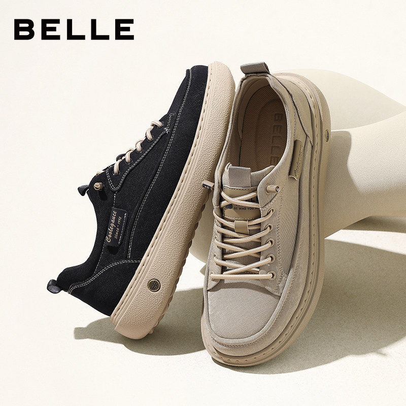 百丽男士户外休闲工装板鞋夏季新款厚底增高透气布鞋子A2137CM5