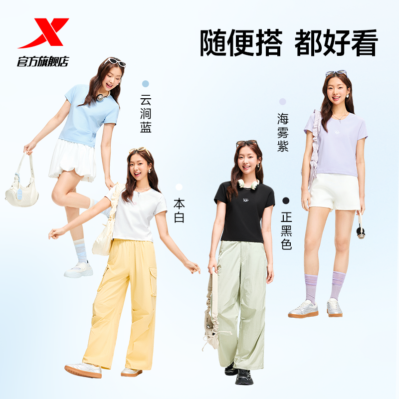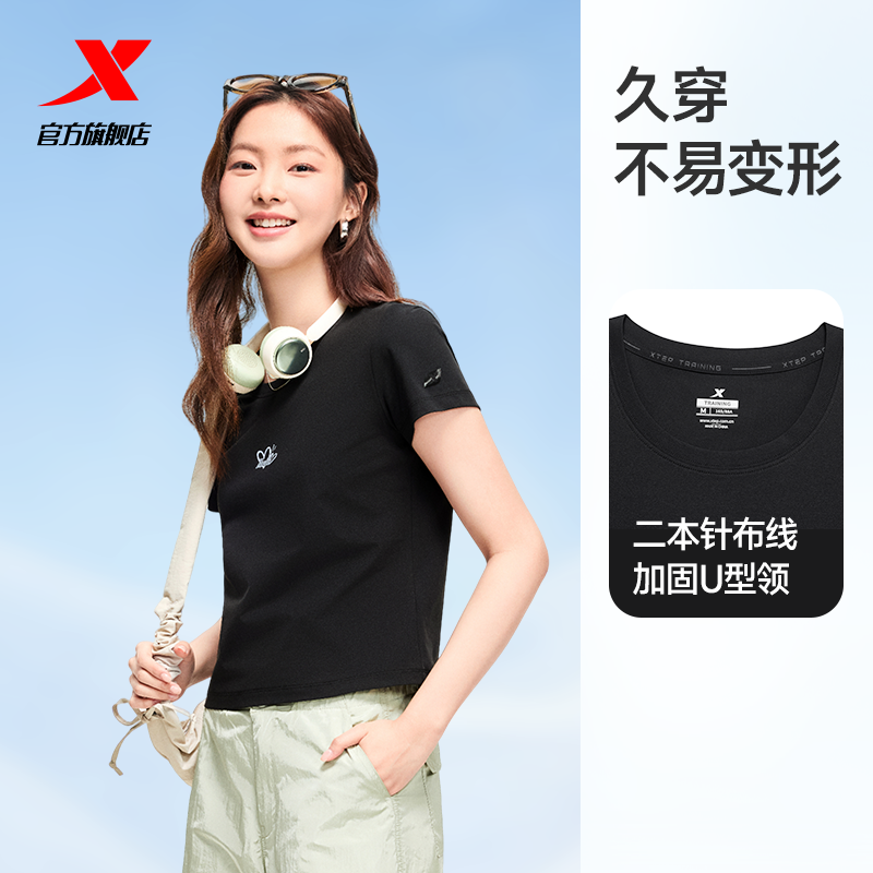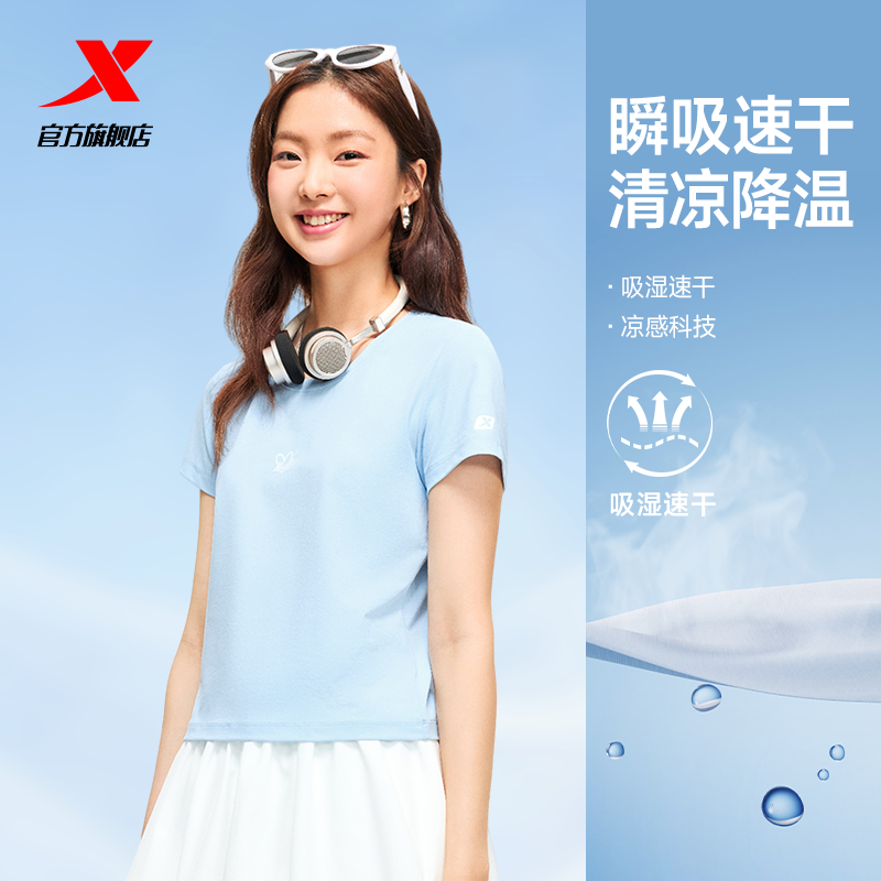特步大师T女2026年夏季显瘦冰丝T恤运动上衣休闲女装修身速干短袖