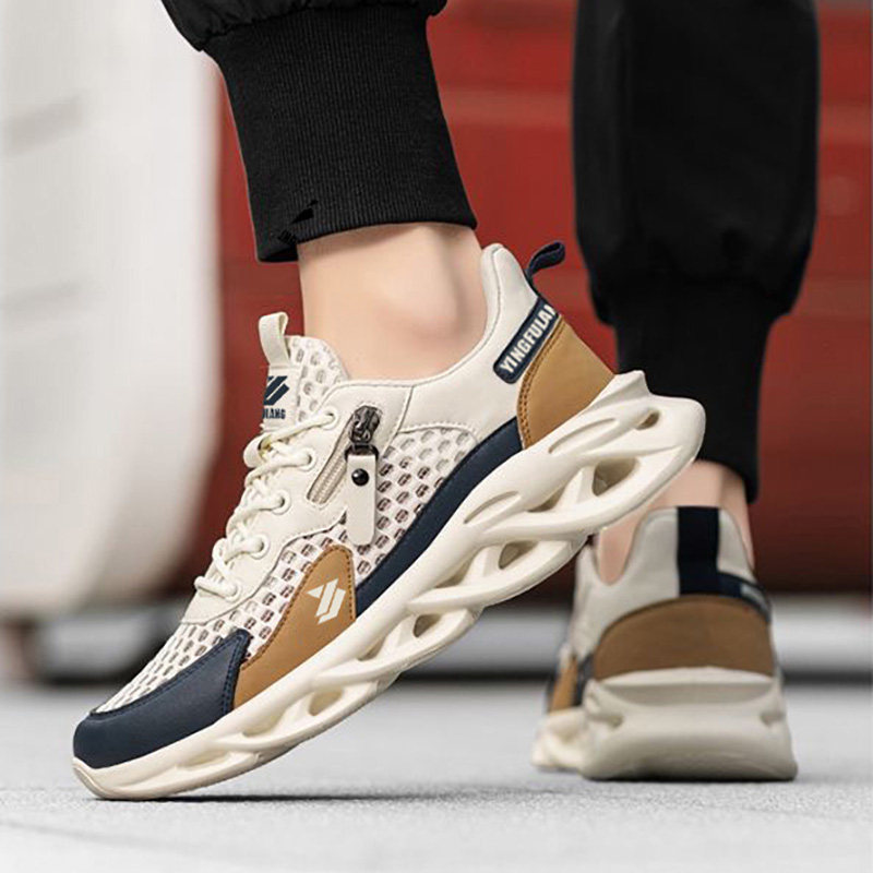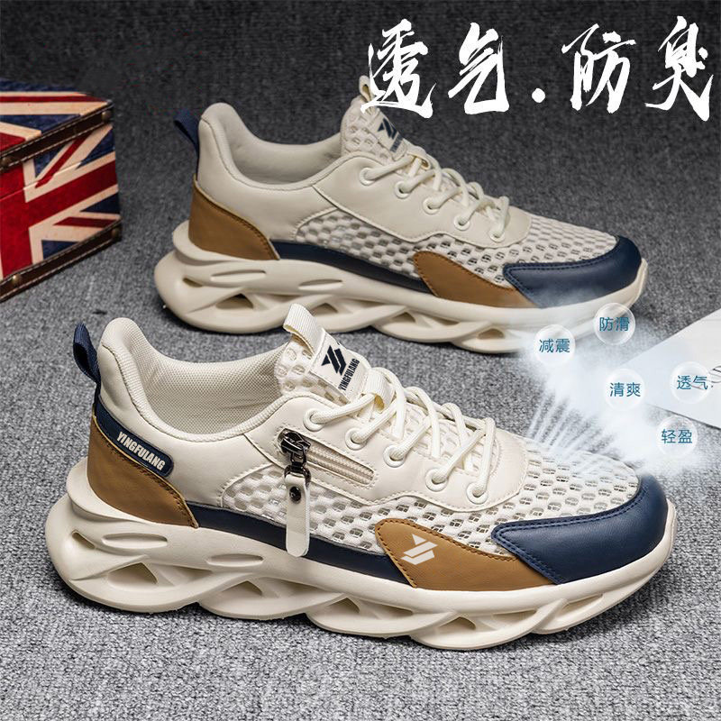 新款男鞋夏季透气网鞋男士网面运动鞋轻便老爹鞋跑步潮鞋休闲白色