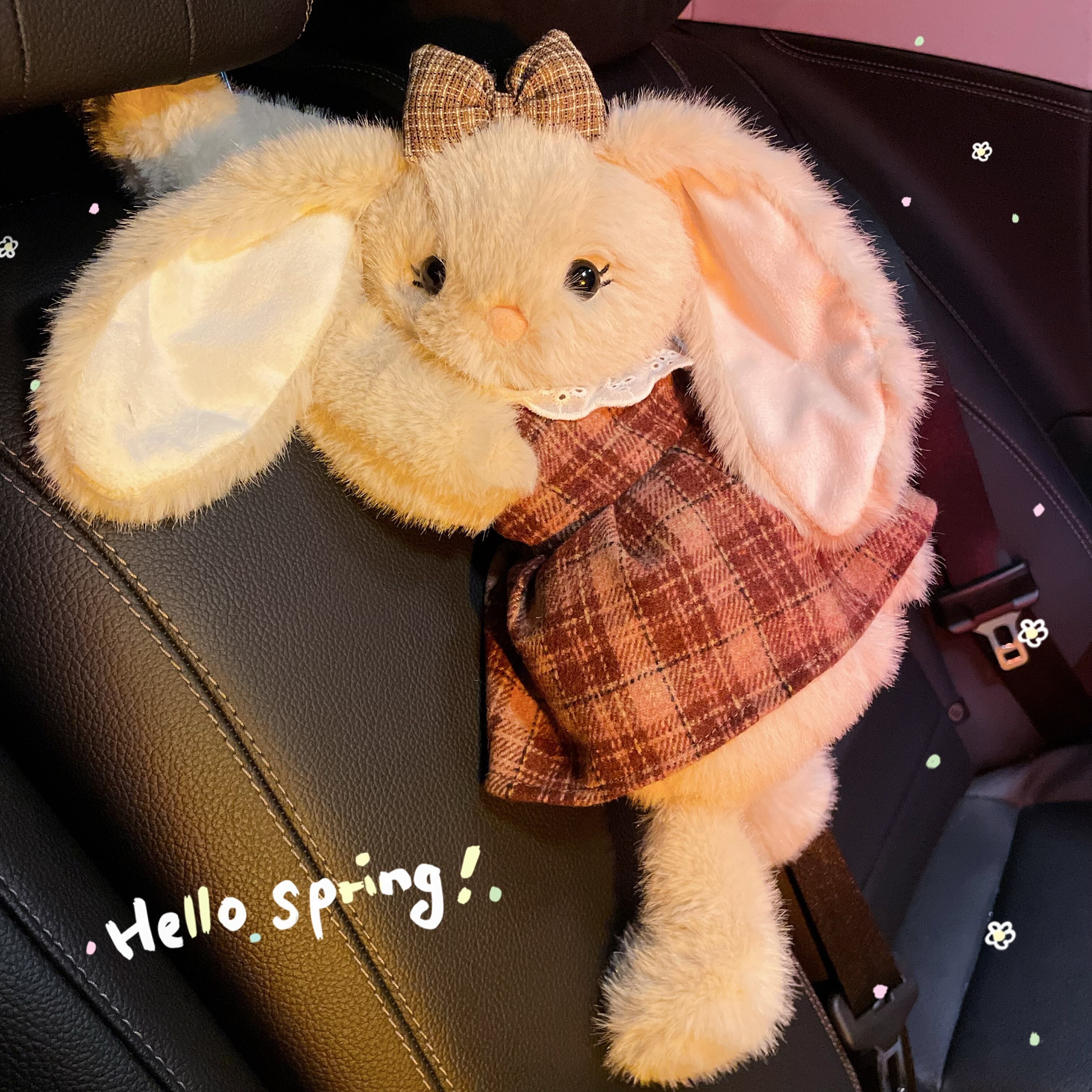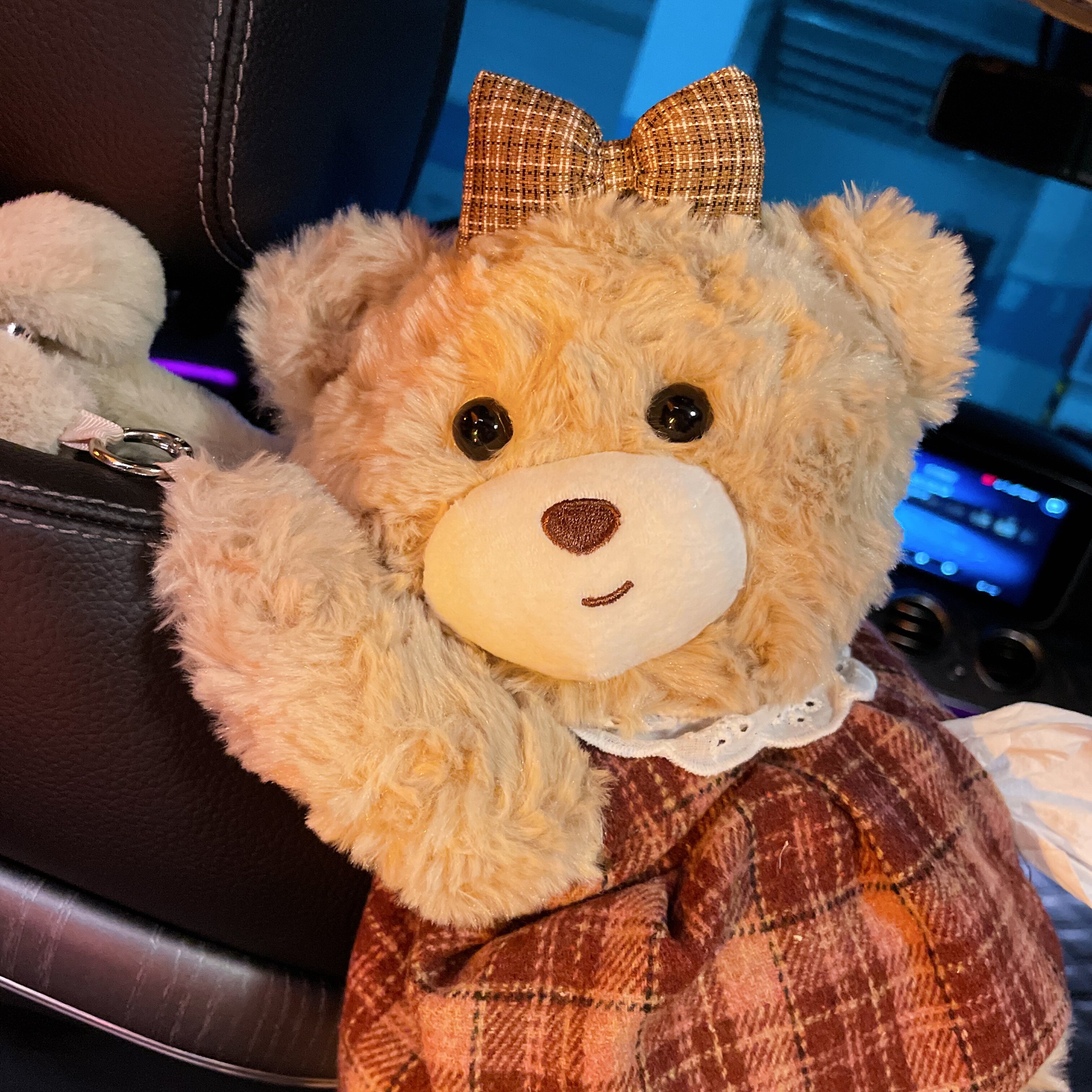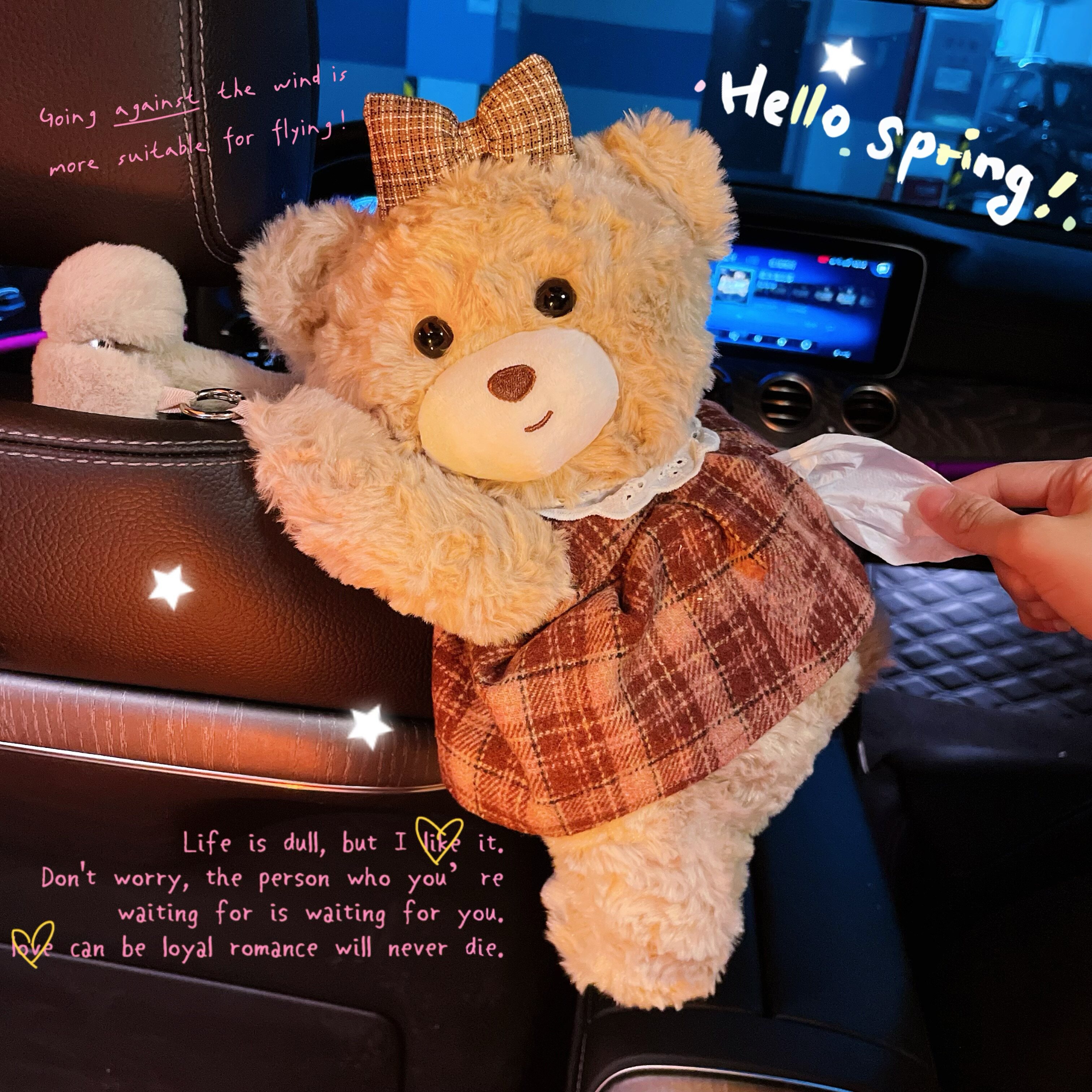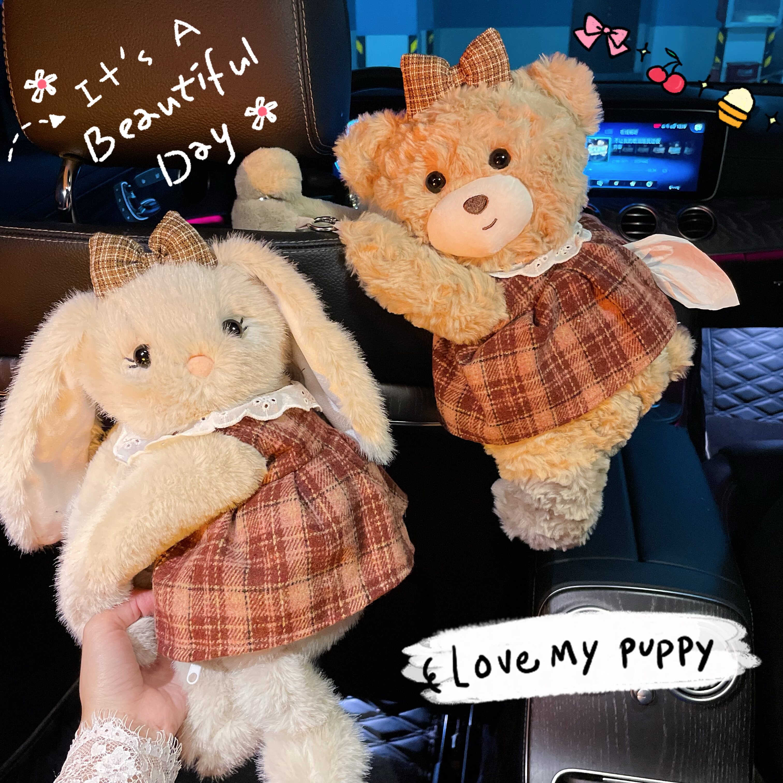 车载纸巾盒创意挂式可爱玩偶熊兔汽车抽纸盒女生车载好物车内装饰
