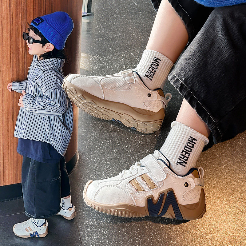 男童鞋子儿童拼色德训鞋网面运动鞋轻便魔术贴新款休闲鞋2026女童