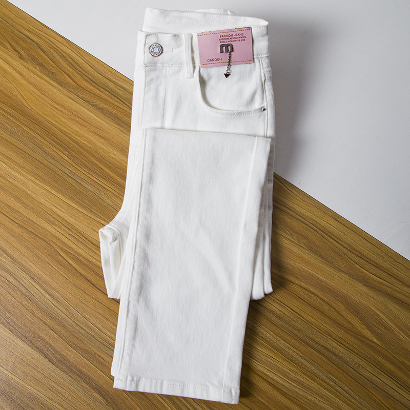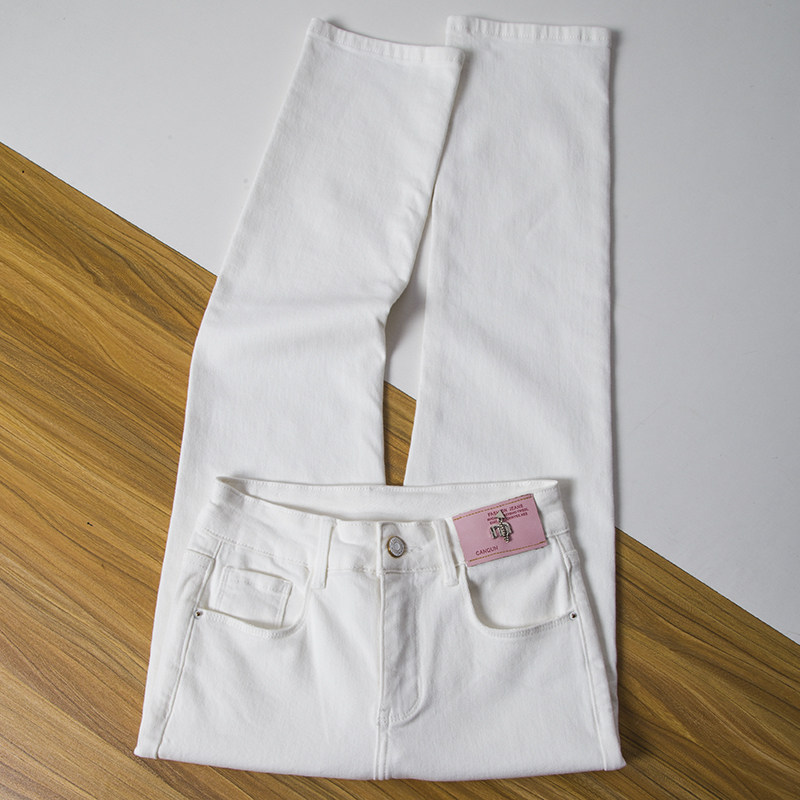 原创白色直筒牛仔裤女2026春季新款高腰窄版小个子九分烟管裤