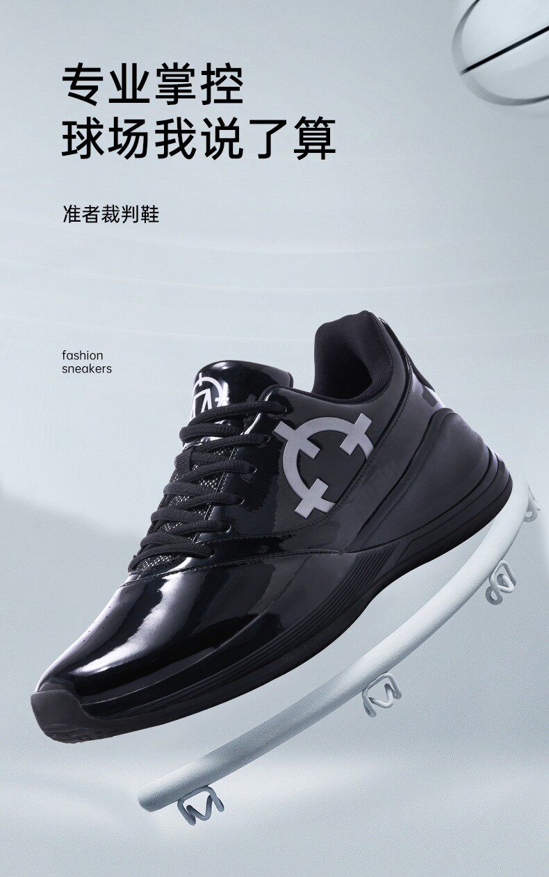 准者新款篮球裁判鞋 防滑耐磨 漆皮亮面 透气缓震 全黑超闪亮包邮