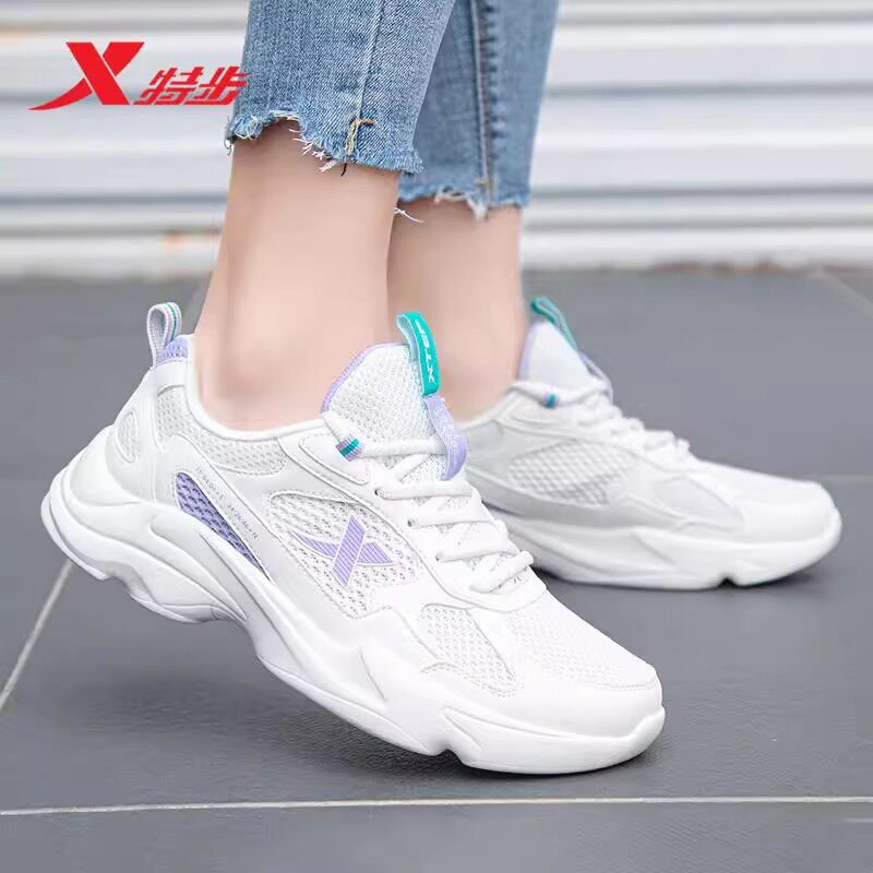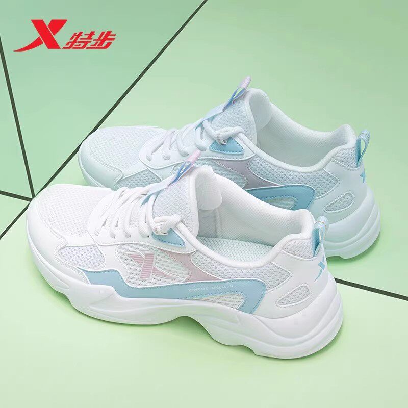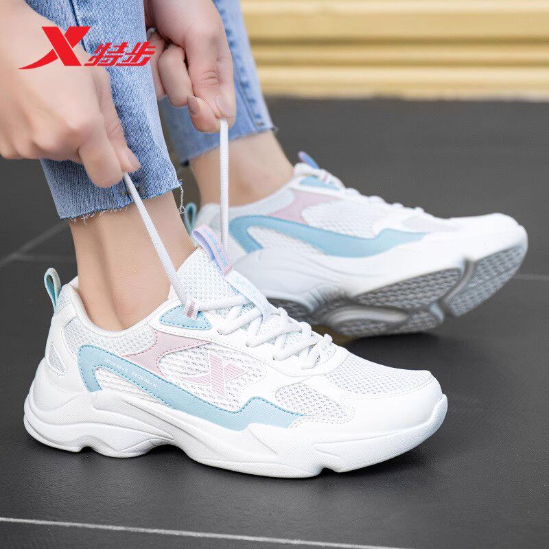 特步官方正品运动鞋女款春季初中生软底跑步鞋网面透气休闲老爹鞋
