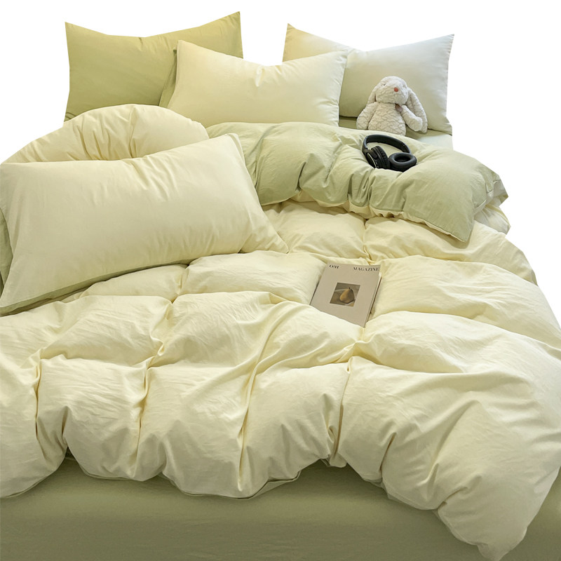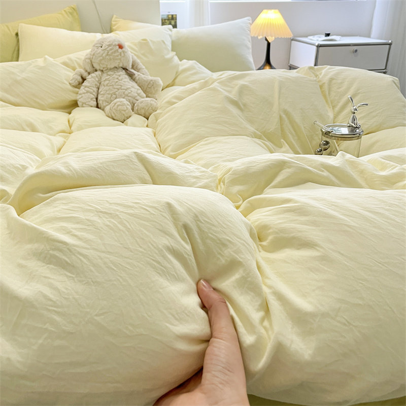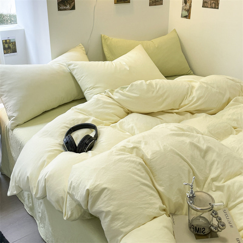 简约纯色水洗棉四件套春夏被套非全棉纯棉床单人宿舍床上三件套笠