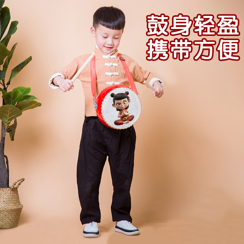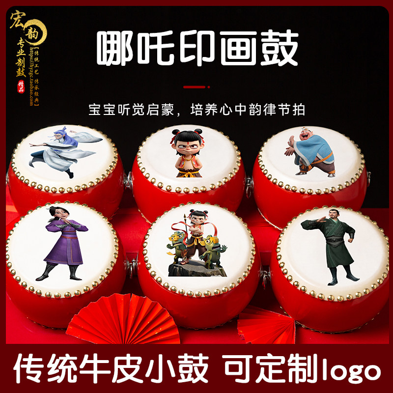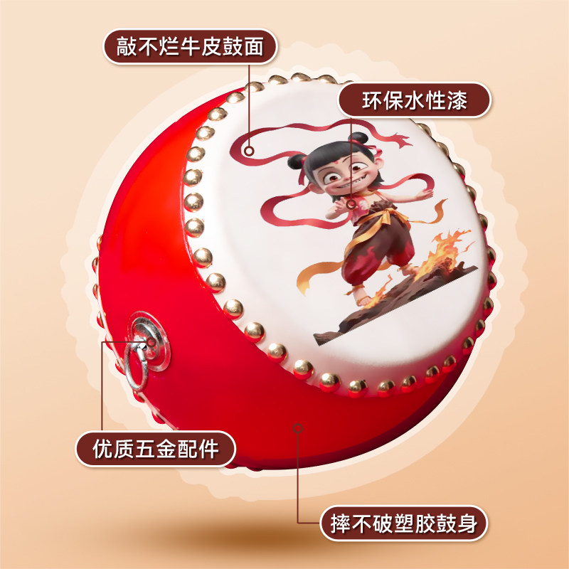 哪吒卡通鼓牛皮鼓儿童玩具小鼓幼儿园表演鼓婴儿手拍鼓敲打鼓乐器