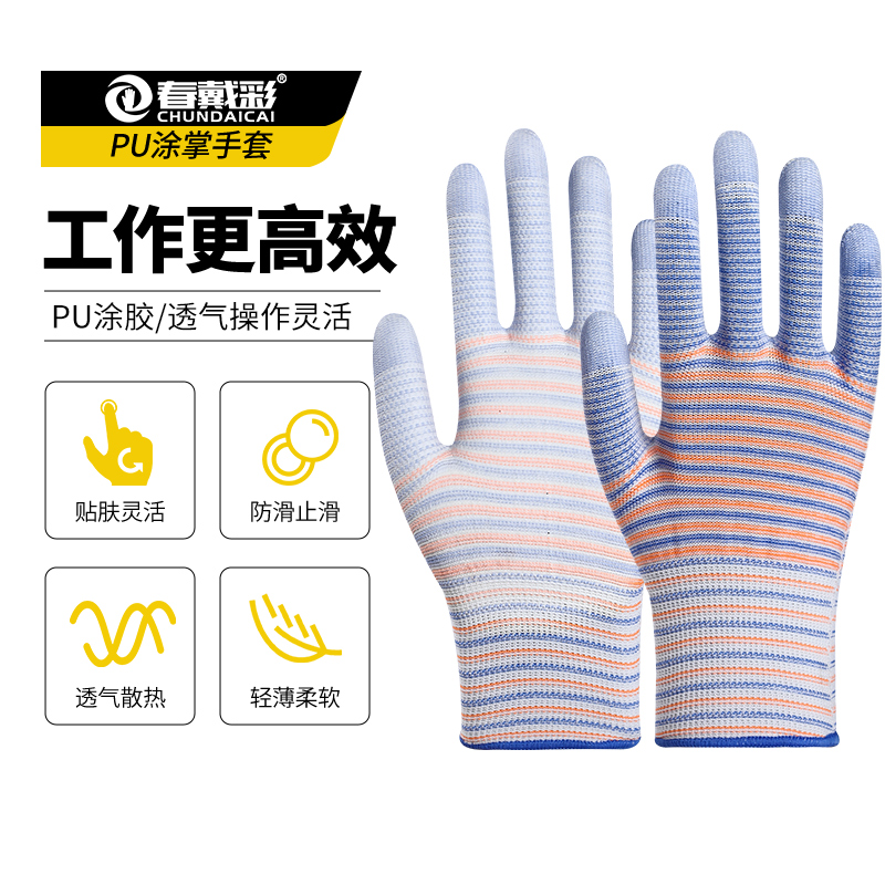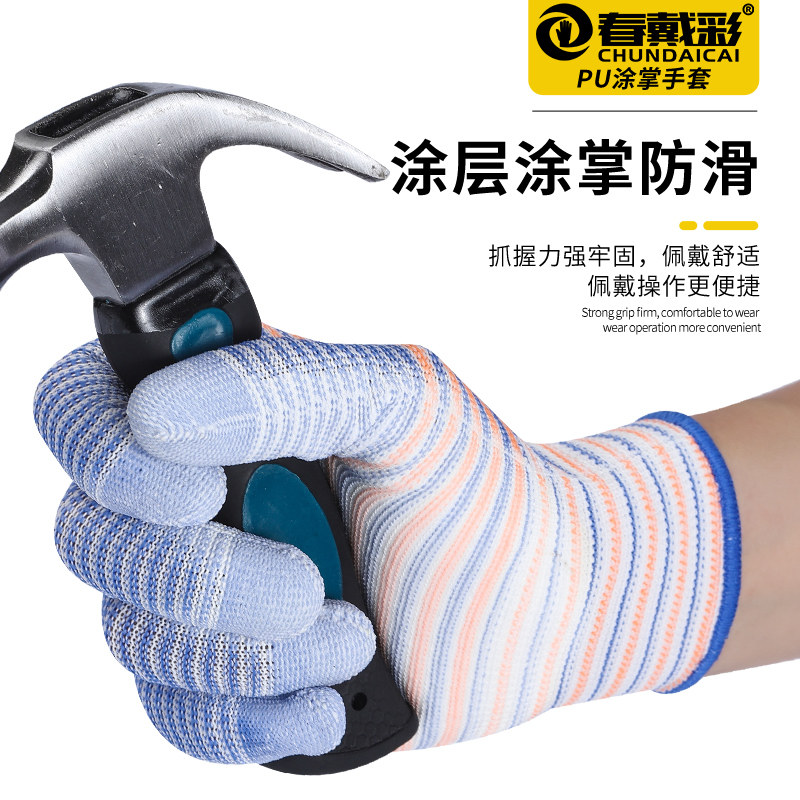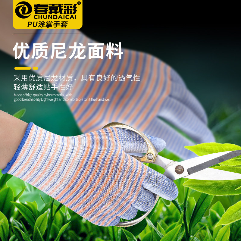 PU涂掌斑马纹涂胶薄款耐磨防滑男女舒适打包搬运干活胶皮劳保手套