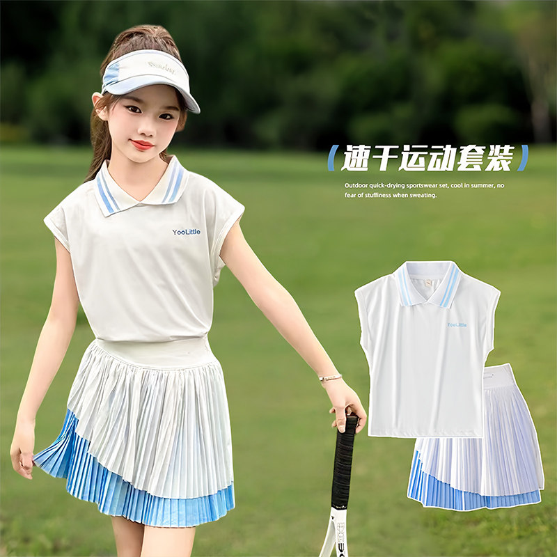 女童速干运动POLO衫短袖套装中大童夏装冰丝薄款羽毛球网球训练服
