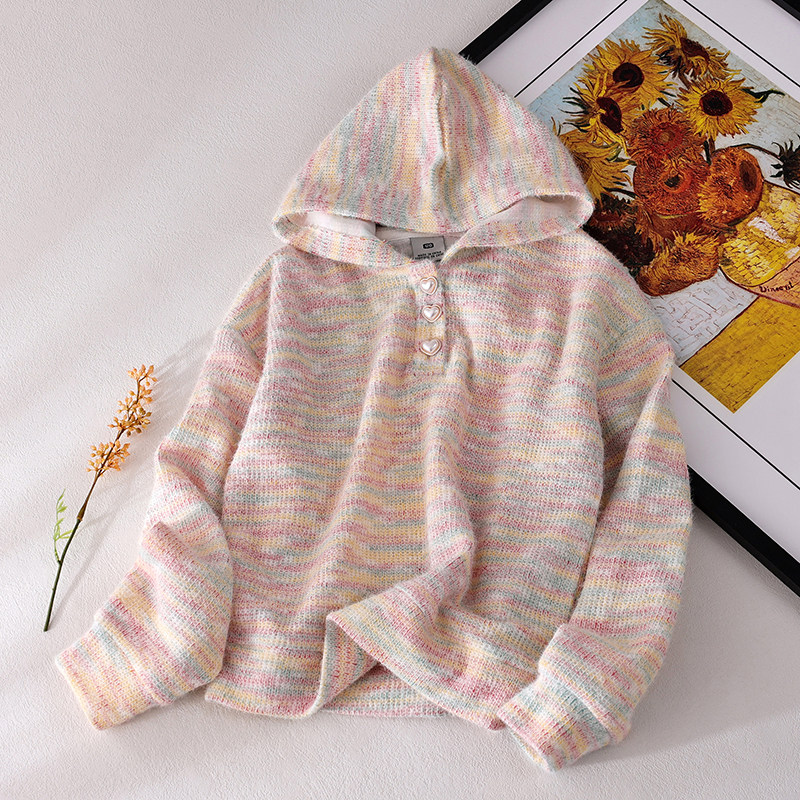 女童卫衣春装2026新款儿童洋气彩虹上衣女大童休闲连帽套头衫韩版