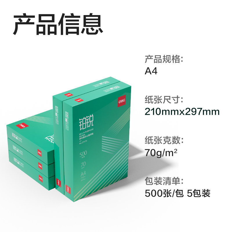 得力a4纸500张一包打印纸a3纸复印纸打印机专用白纸双面80g通用学生用试卷办公整箱批发70克加厚打印用纸