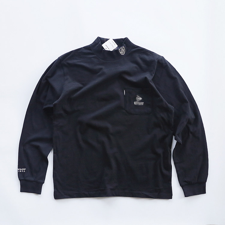刺绣款日本原单长袖秋冬纯棉全棉高领T恤打底衫保暖男款螺纹修身