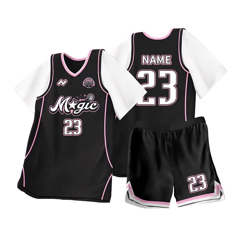 篮球服套装女生定制假两件短袖男学生比赛队服定做美式篮球衣背心