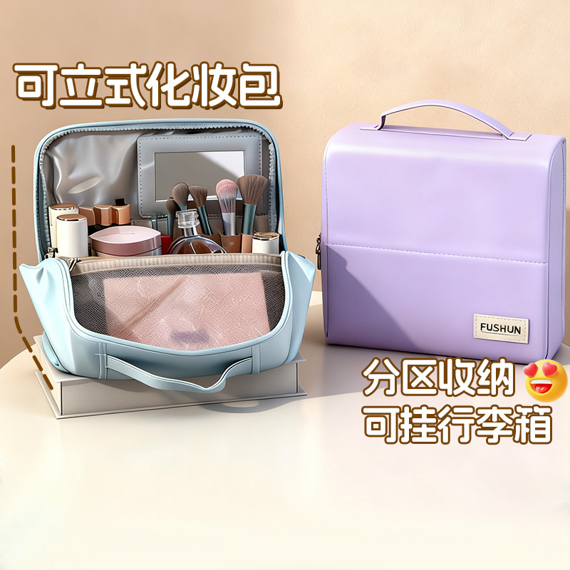 升级版可立式化妆包女大容量便携式挂行李箱旅行手提分区收纳包