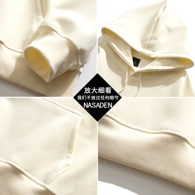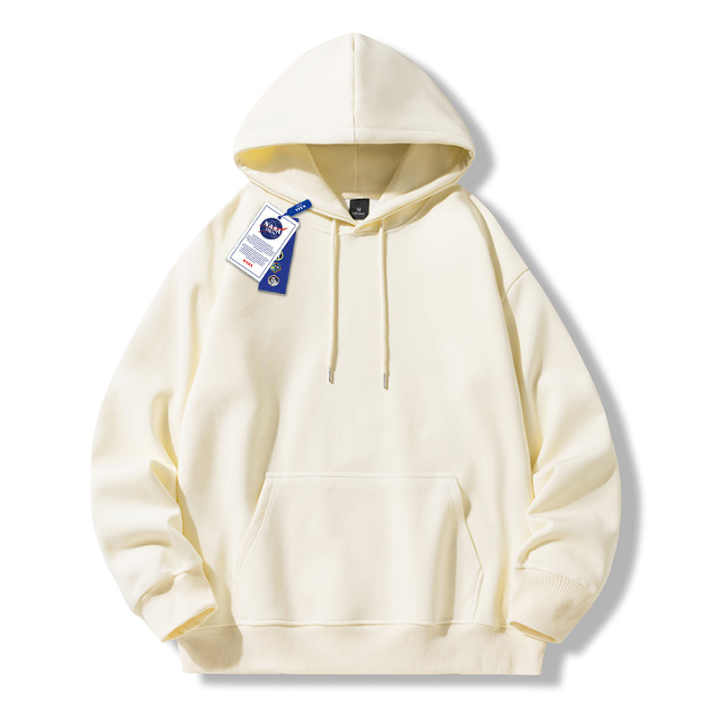 NASA联名美式加绒加厚长袖连帽卫衣男女款秋冬季纯色内搭打底衫男