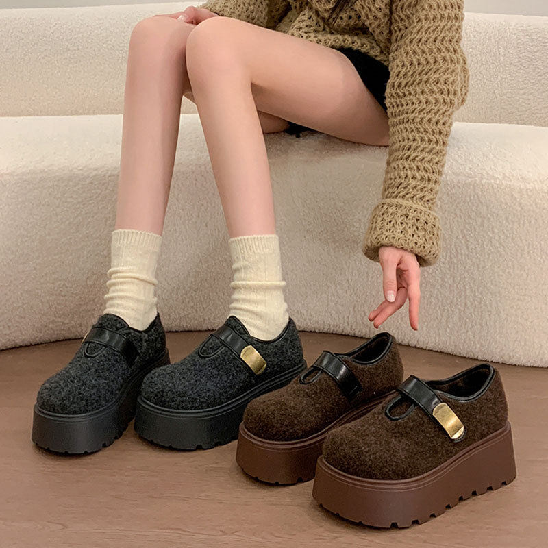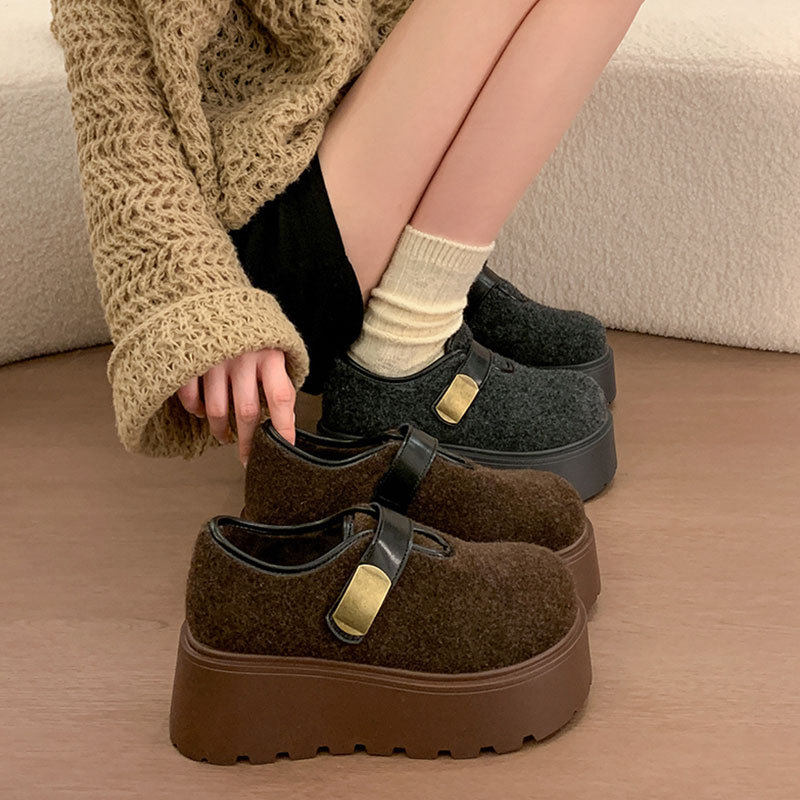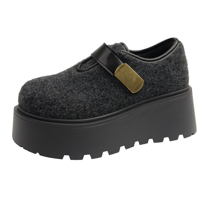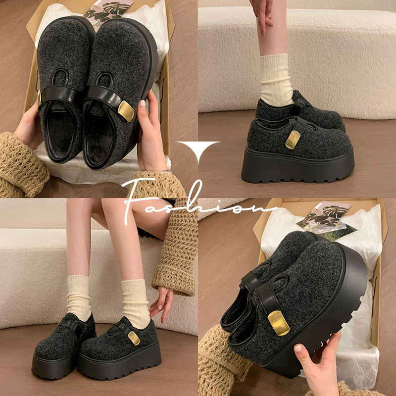 韩国潮鞋灰色厚底加绒勃肯鞋女款2025秋冬季小个子增高乐福鞋保暖