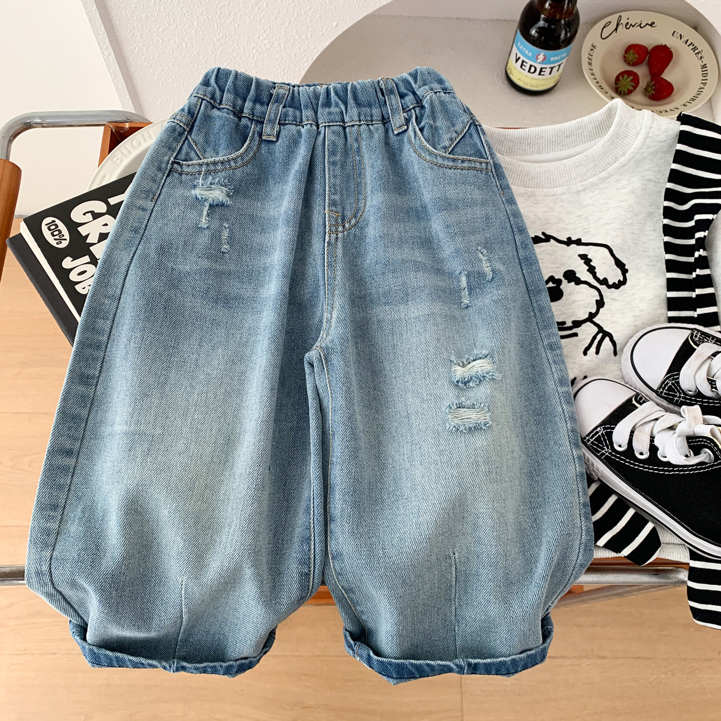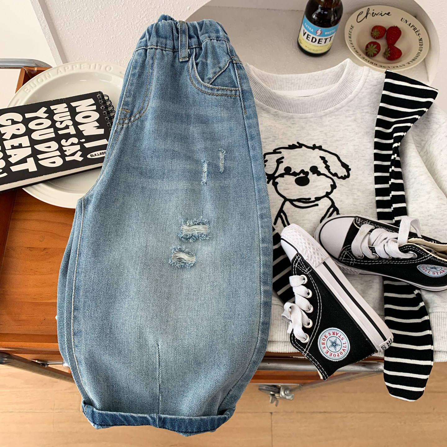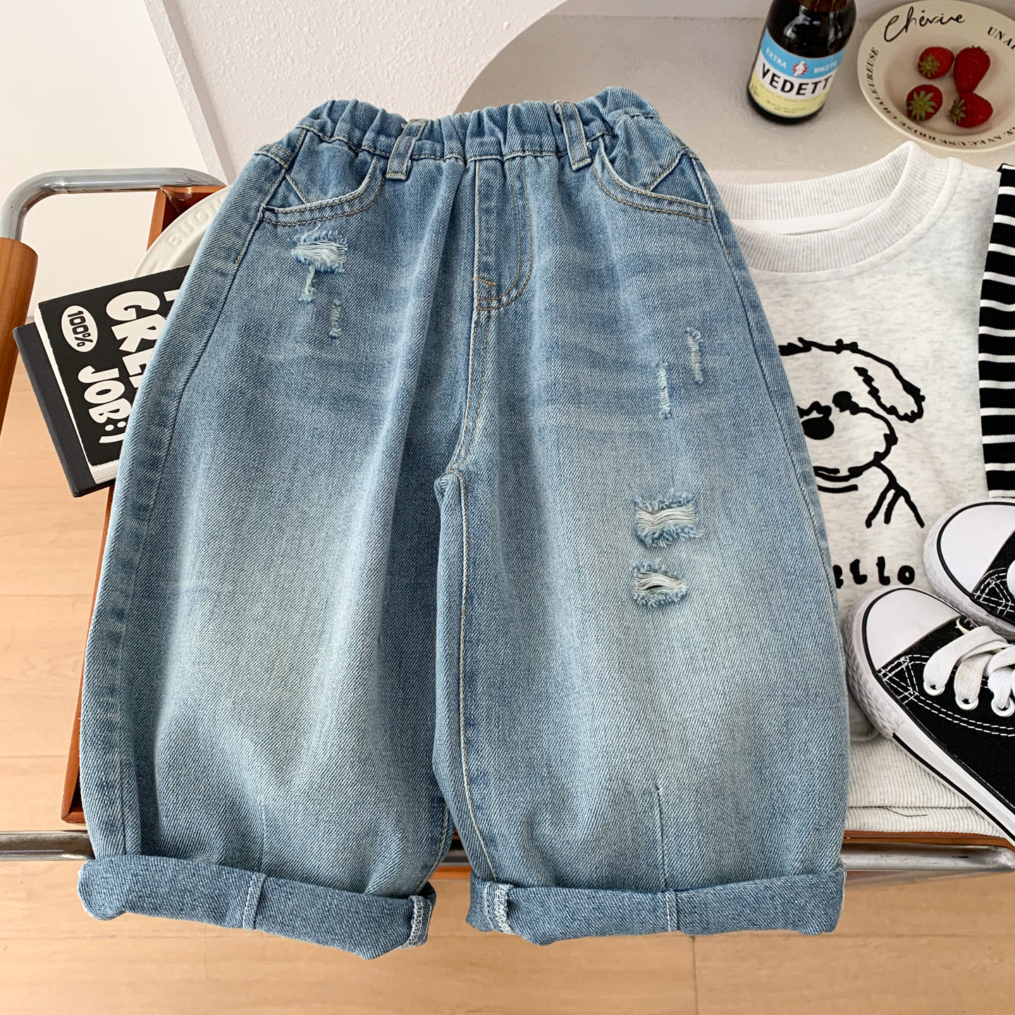 男童春装破洞牛仔裤2026新款儿童韩版简约薄款宽松裤子宝宝百搭潮