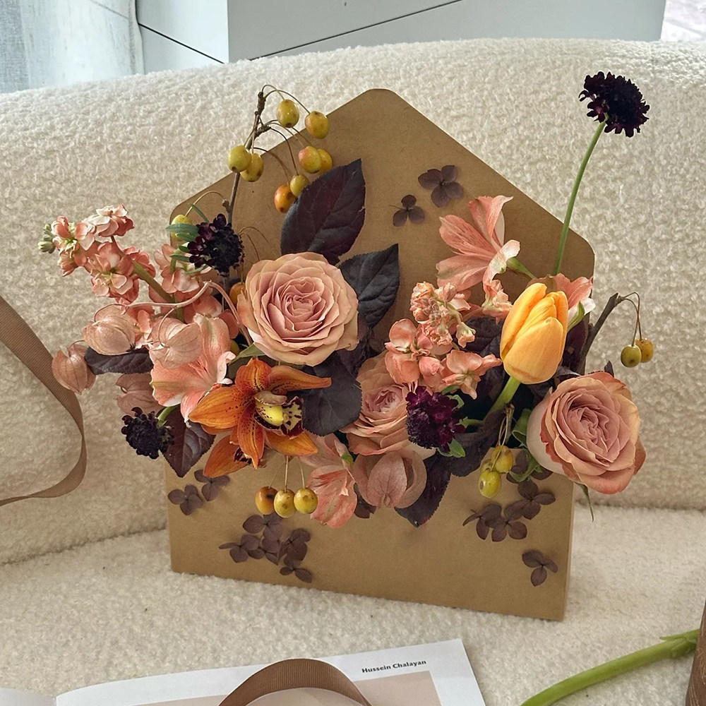 信封花盒花艺花束礼品袋牛皮纸插花袋折叠手提花盒圣诞节鲜花礼盒