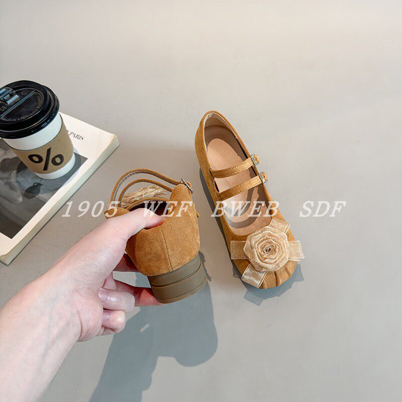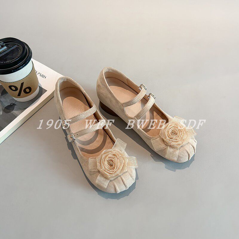 羊反绒 正品真皮 内增高玛丽珍鞋女2026新款花朵装饰浅口单鞋