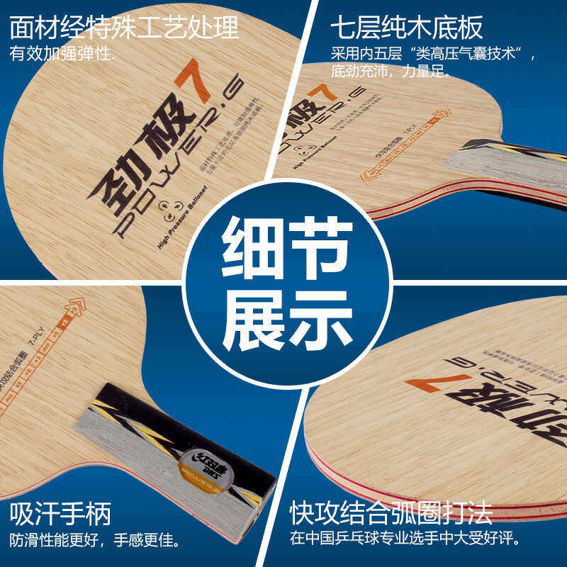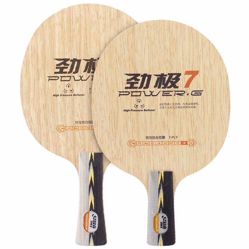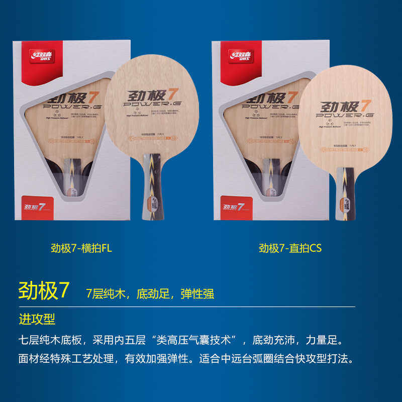 红双喜DHS劲极7劲极七纯木乒乓儿童专业球拍底板手工粘拍套餐